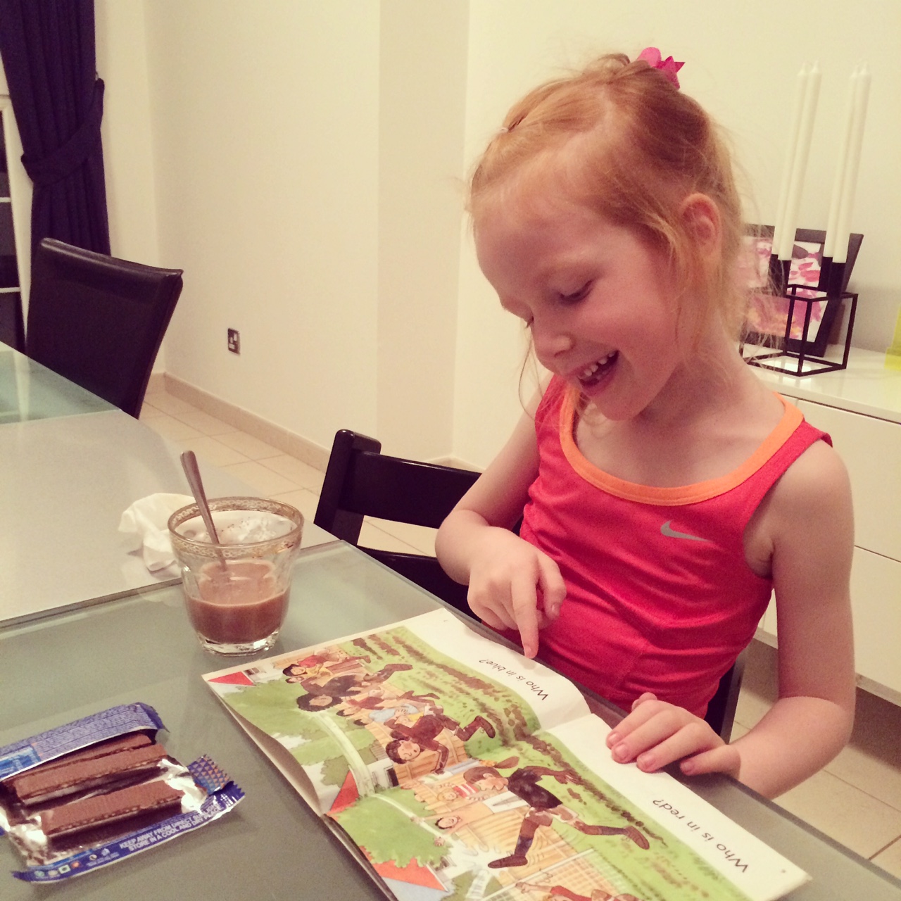Cille bad endda om en kop aftenkaffe, så det serverede jeg for hende, mens hun læste højt for os af sine læse-let-bøger fra skolen!