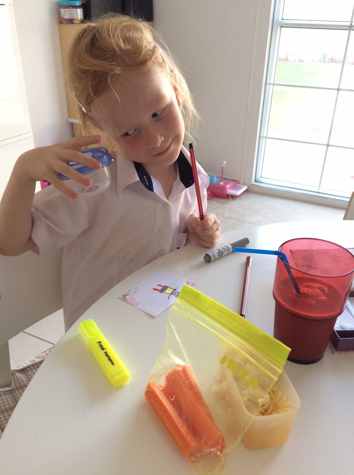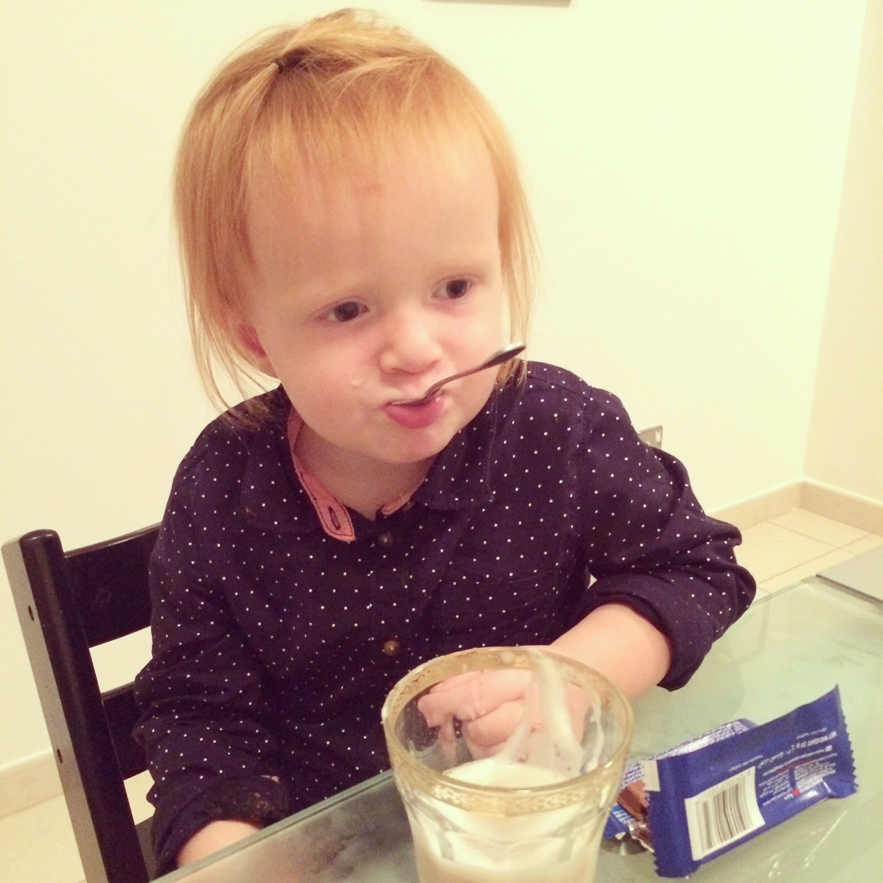 “Mummy, do you know what Daddy did, when he picked me up from school? He didn’t even check my lunch bag to see if I had eaten my healthy food, he just gave me a big bowl of ha-wer-gyn and Frosties straight away!”