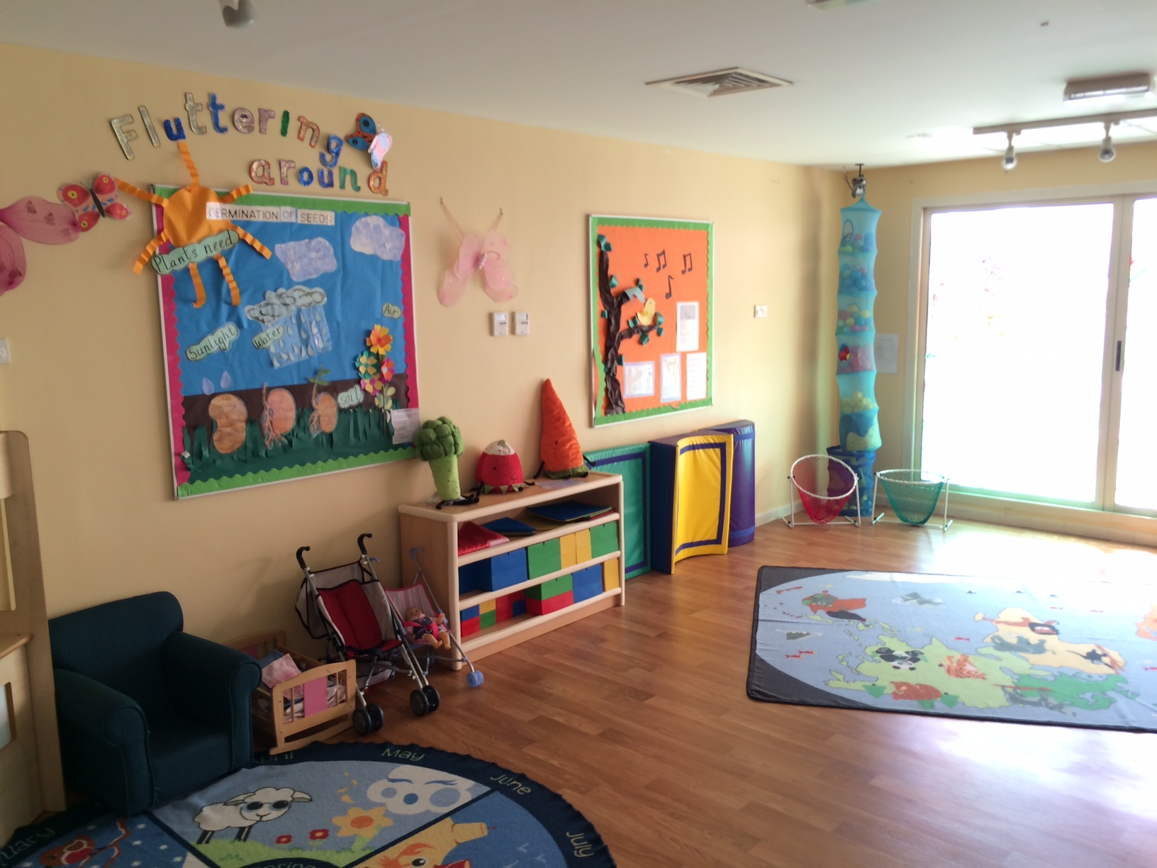 Stedet er dejligt indrettet med lyse, farverige lokaler og store udendørsarealer, som børnene kan bruge i vinterhalvåret.