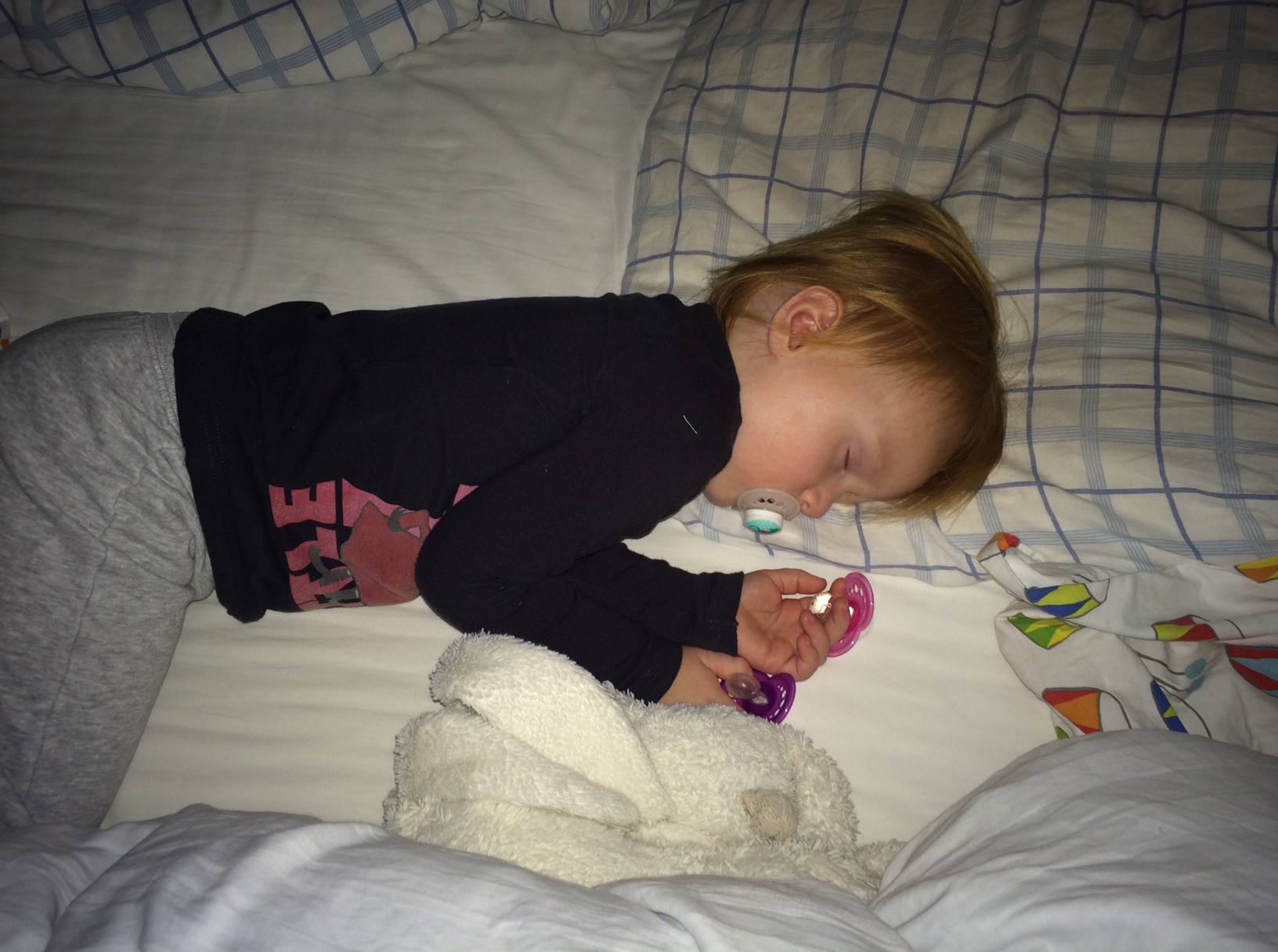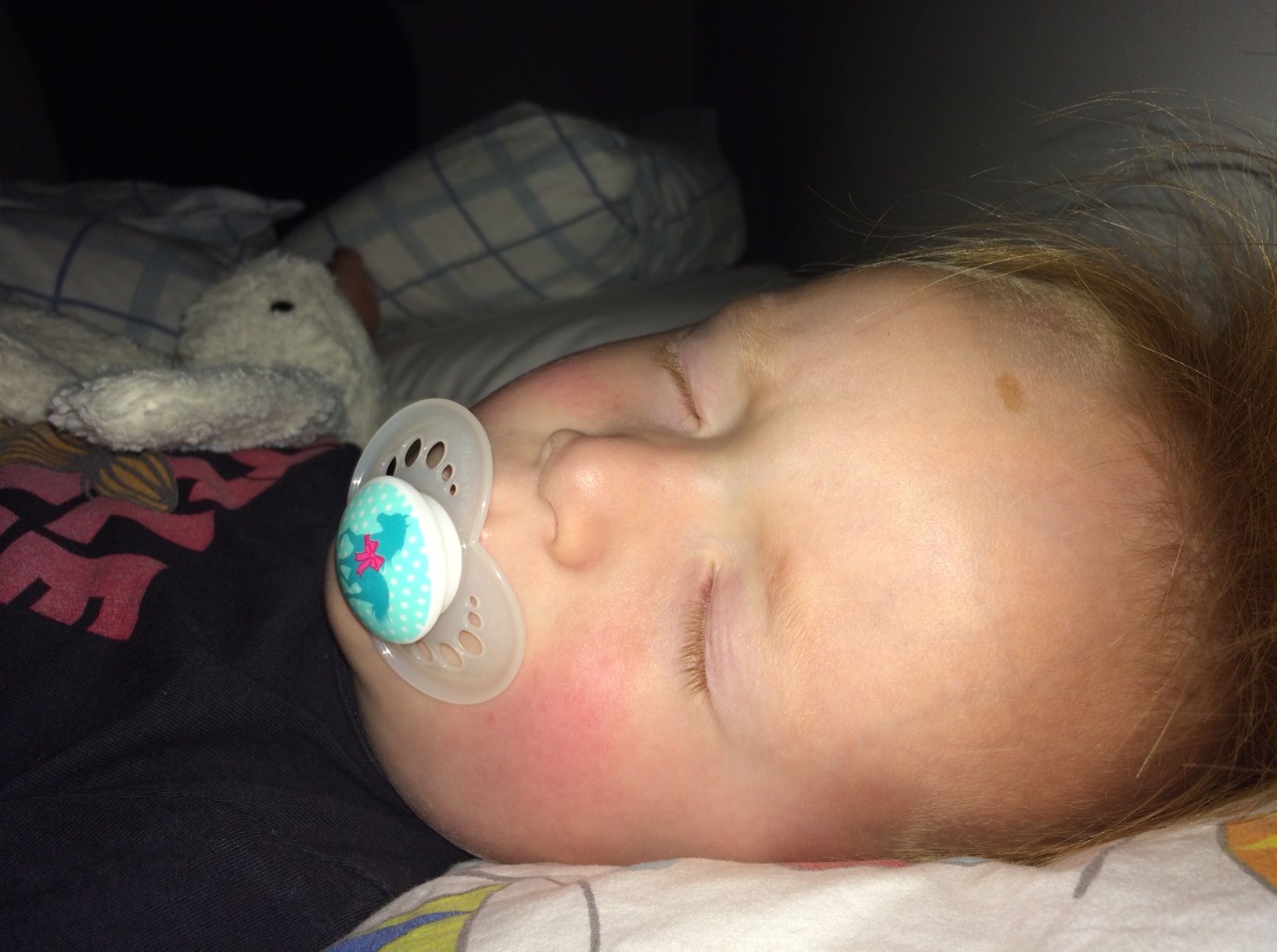 Til min store overraskelse har Mille foræret en af sine sutter til Cille, der nu sover veltilfreds med sut i munden! Hvad sker der lige for det? Hun er afvænnet sine sutter for 2 ½ år siden!