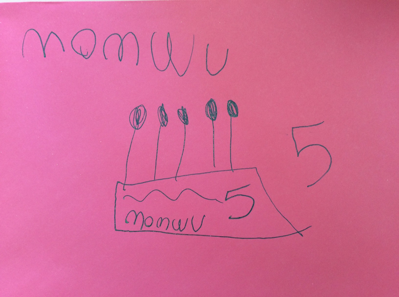 Vi vågner til Mor-Mormors fødselsdag. Hun bliver vistnok 5, mener Cille.