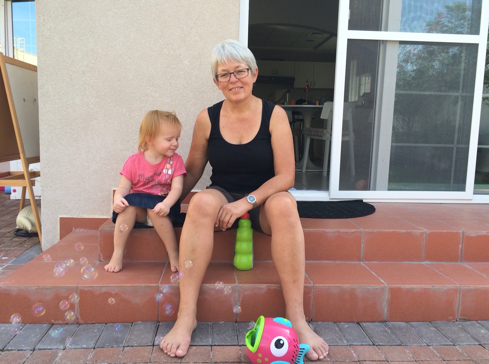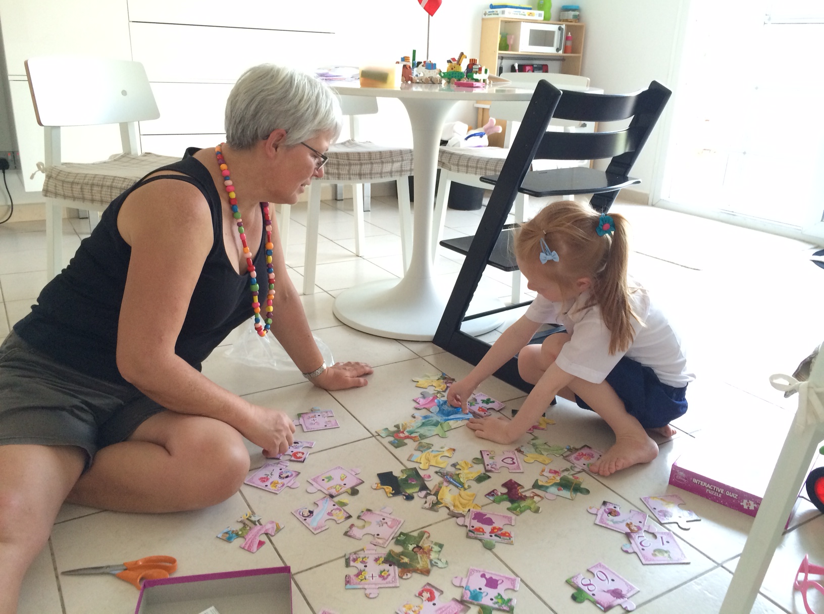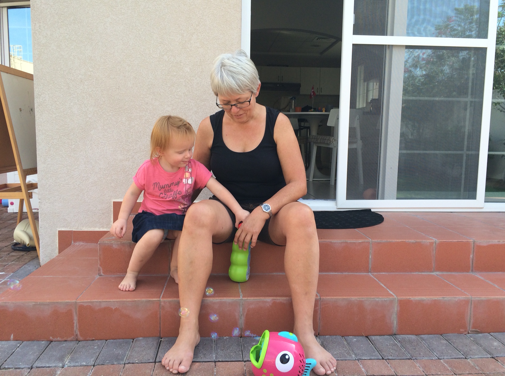 Kl. 13 kommer jeg hjem til en glad Lille My og Mormor. Der er fuld fart på og munden står ikke stille på Mille, der har tur-guidet Mormor rundt i hele huset og hjulpet hende med at finde relevant indhold i skabe og skuffer – og så har de været et smut ud i nabolaget, som jo (endnu) er helt ukendt territorium for Mormor.