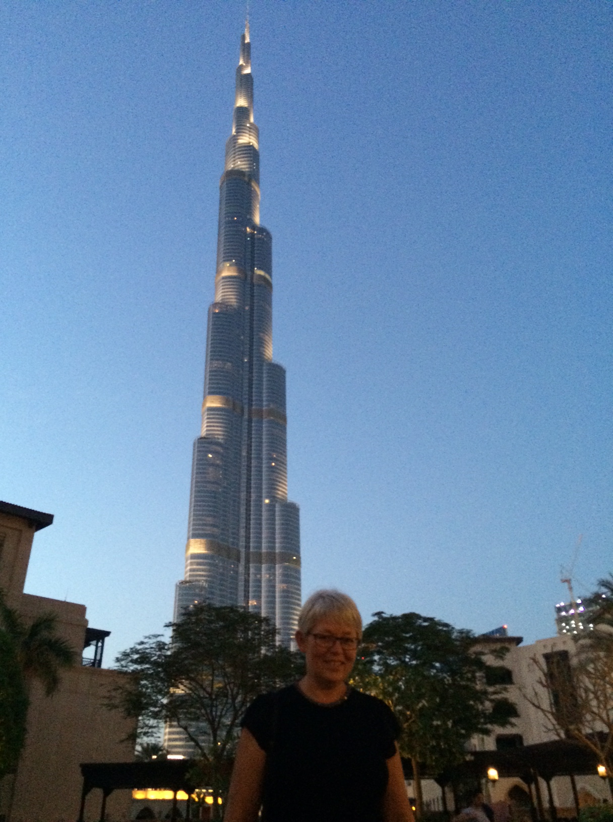 Her er fødselaren foreviget med Burj Khalifa, verdens højeste bygning, i baggrunden.