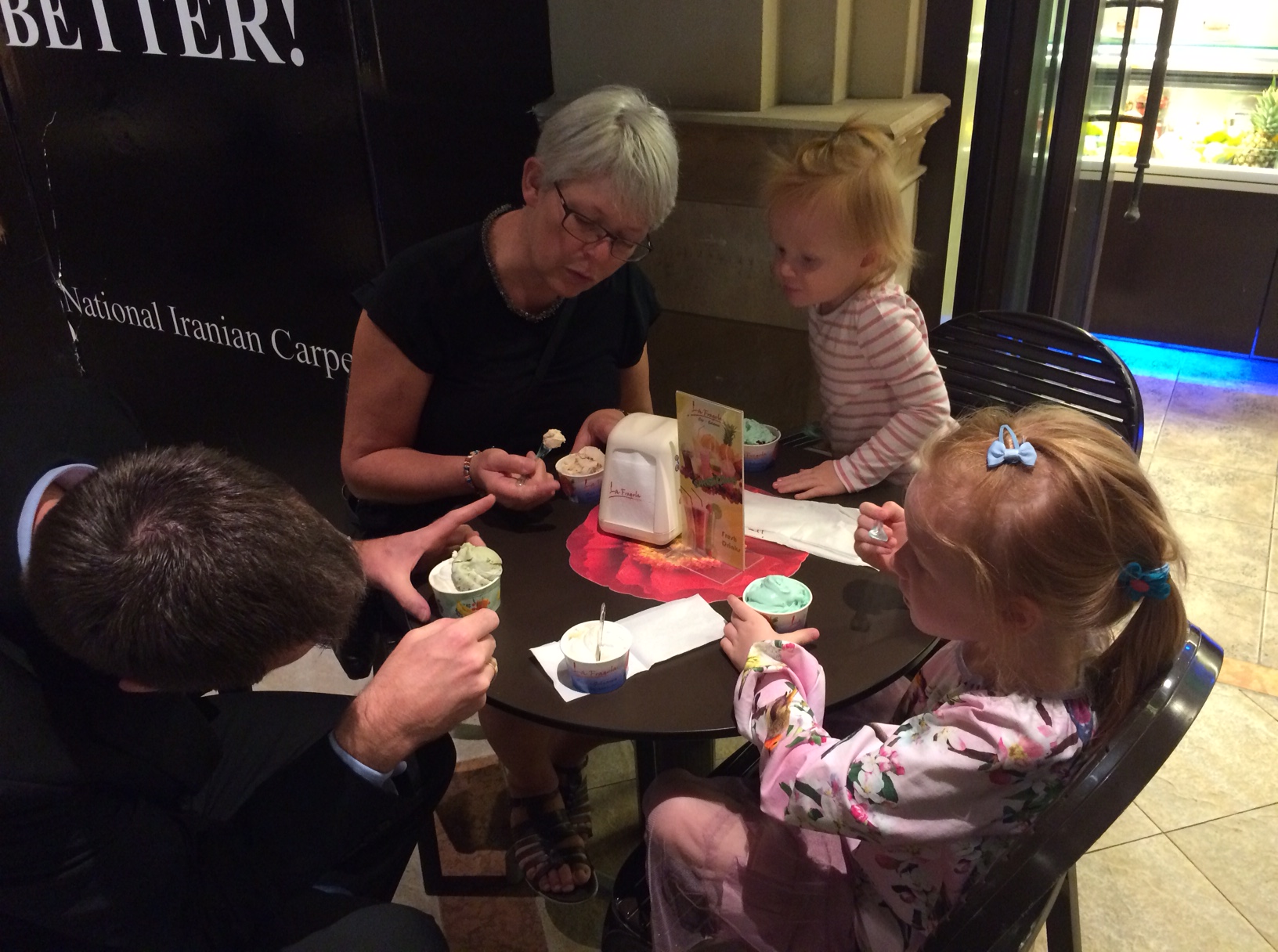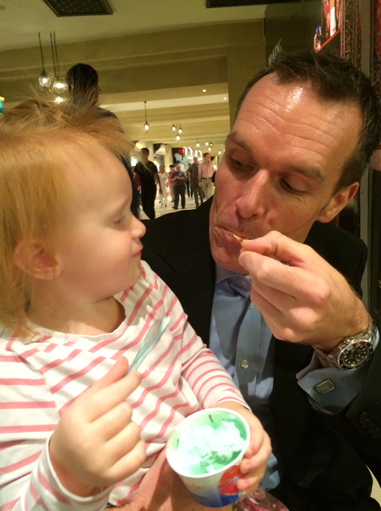 Efter at have indtaget verdens sådan-cirka møreste oksemørbrad med sublim bernaise og 3 gange lys-lyd-vand-show, der spiller på hele følelsesregistret, så triller vi ud af restauranten og lige ned i favnen på det italienske ishus.