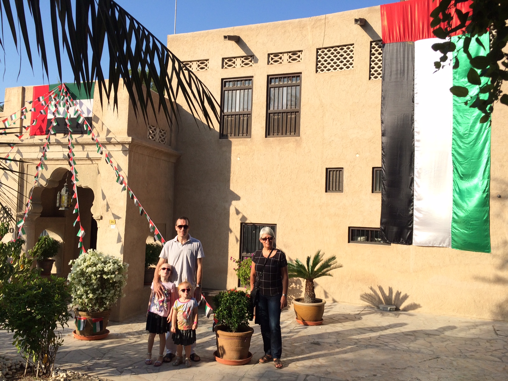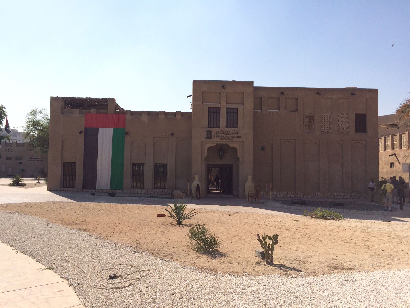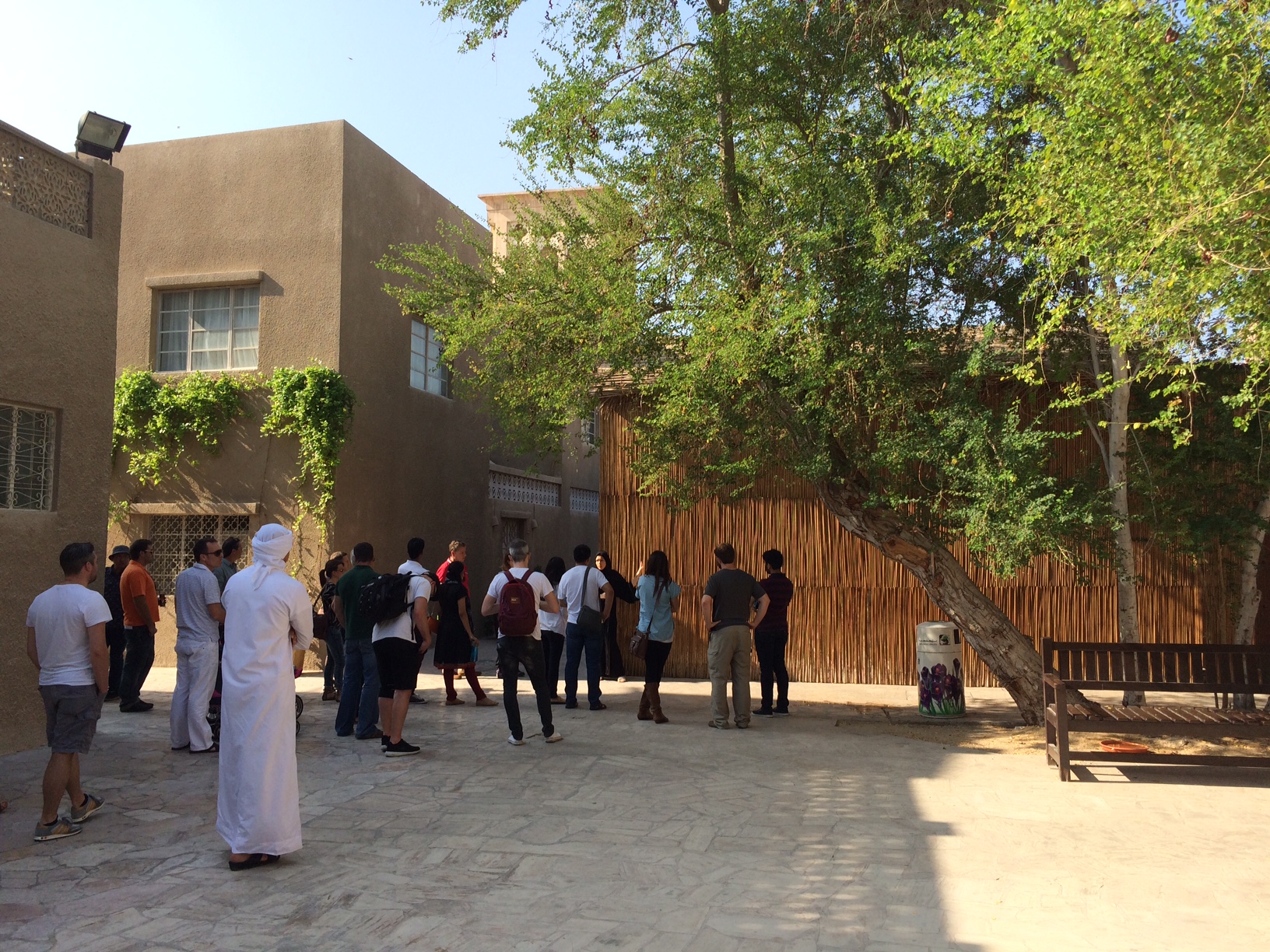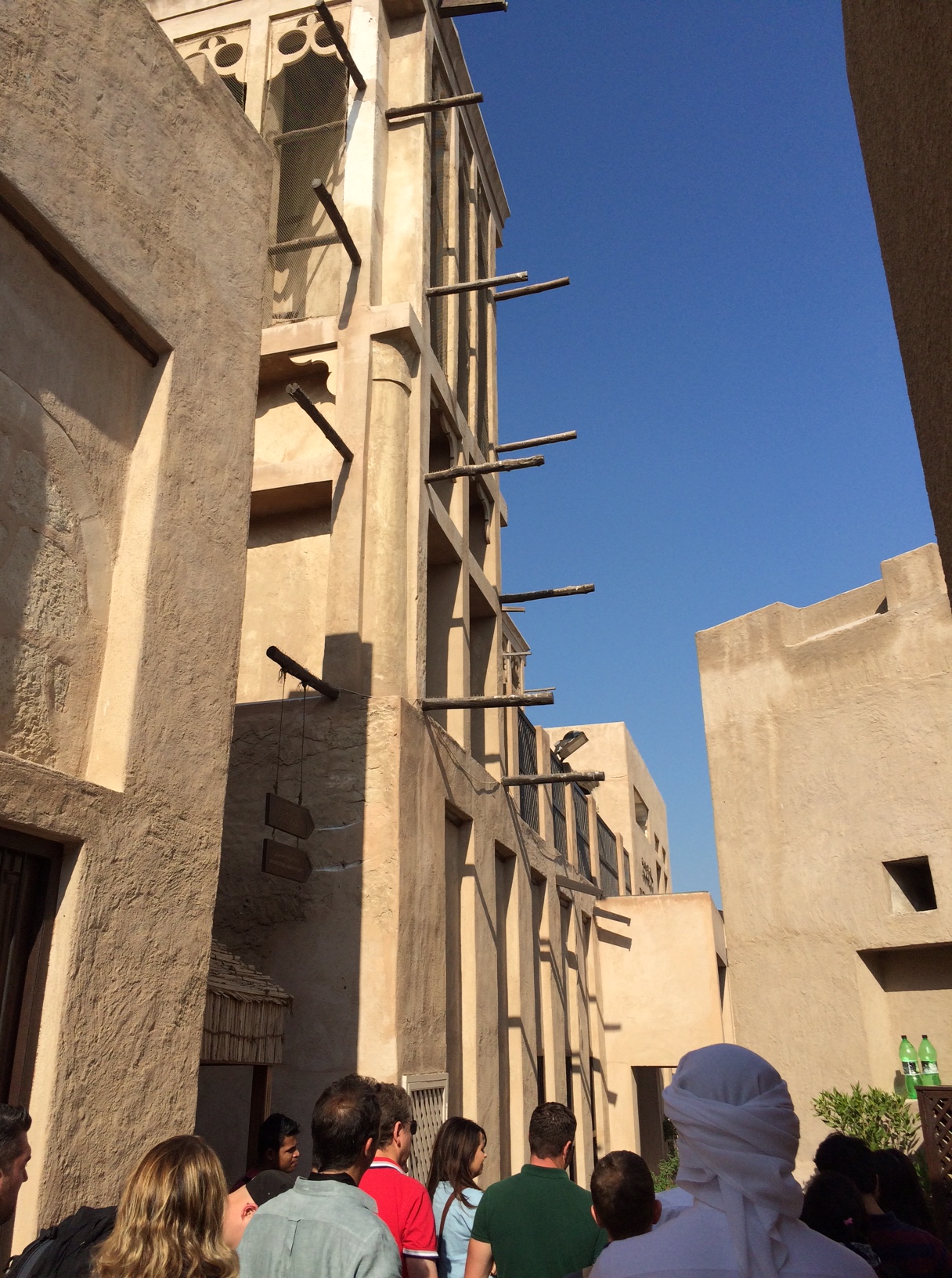 Efter fortællingerne går vi uden for i noget, der tilnærmelsesvist er Emiratiernes svar på “Den Gamle By” i Århus – eller “Frilandsmuseet” uden for København: En samling traditionelle huse i en kunstigt opbygget landsby, som fremviser tidligere tiders boformer.