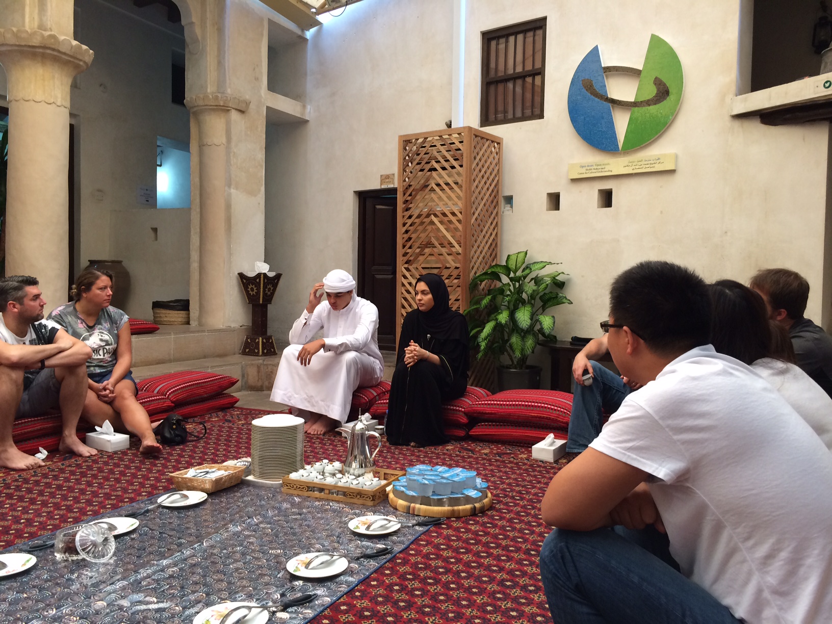 De taler om centrets motto “Open Doors – Open minds”, og forsikrer os om, at ingen spørgsmål om Emirati-kultur, Islam eller arabiske skikke er forkerte, dumme eller uacceptable.