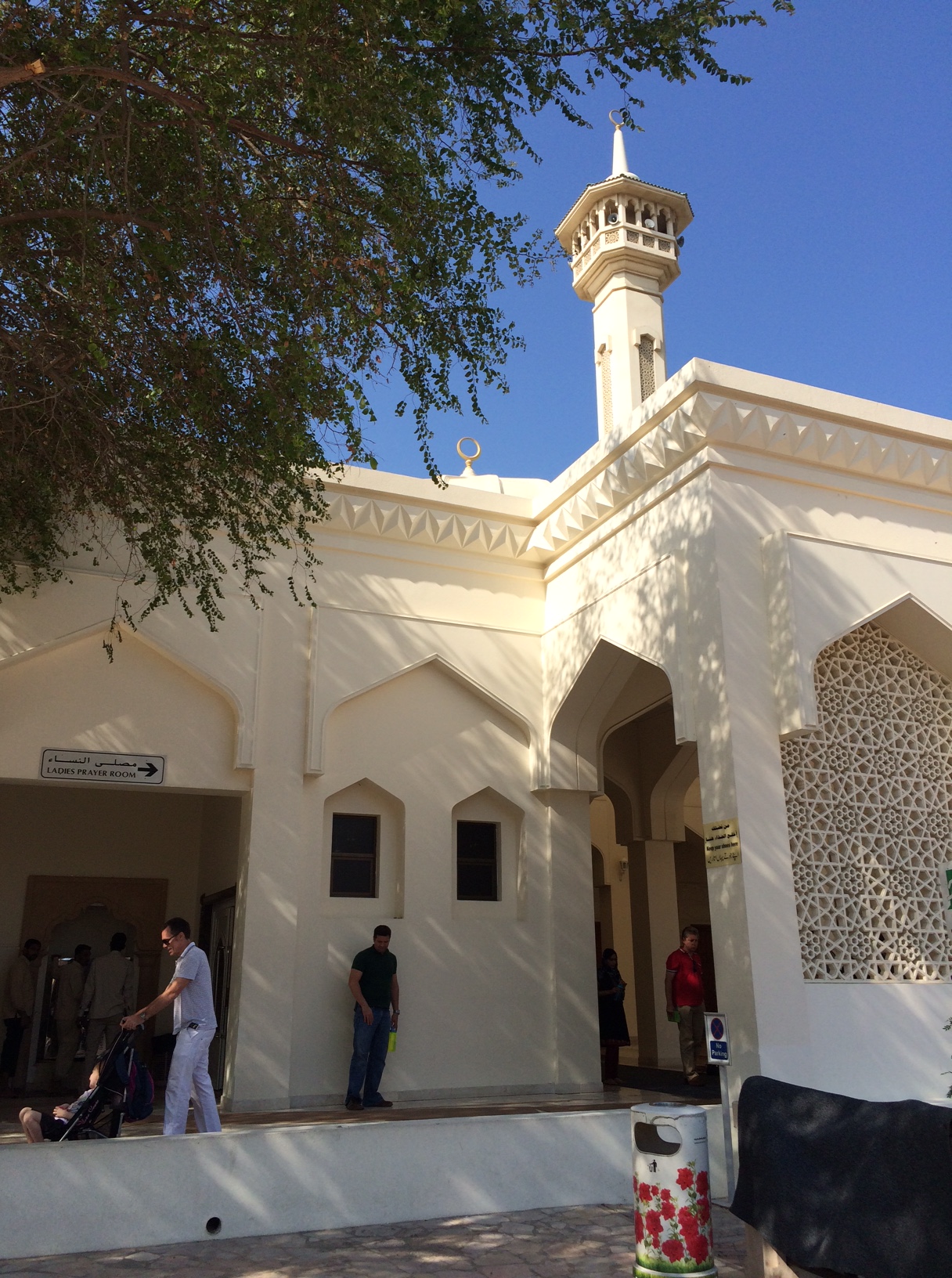 Mændene sidder forrest og kvinderne bagerst. Årsagen er, ifølge centrets Emirati-værter, at kvinder med rumpetten i vejret ikke ligefrem er et syn, som får mænd til at fokusere på deres indre samtale med Gud.