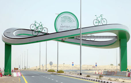 Vi passerer indgangen til Dubai Cycling Course, hvor cykelentusiaster har frit lejde.