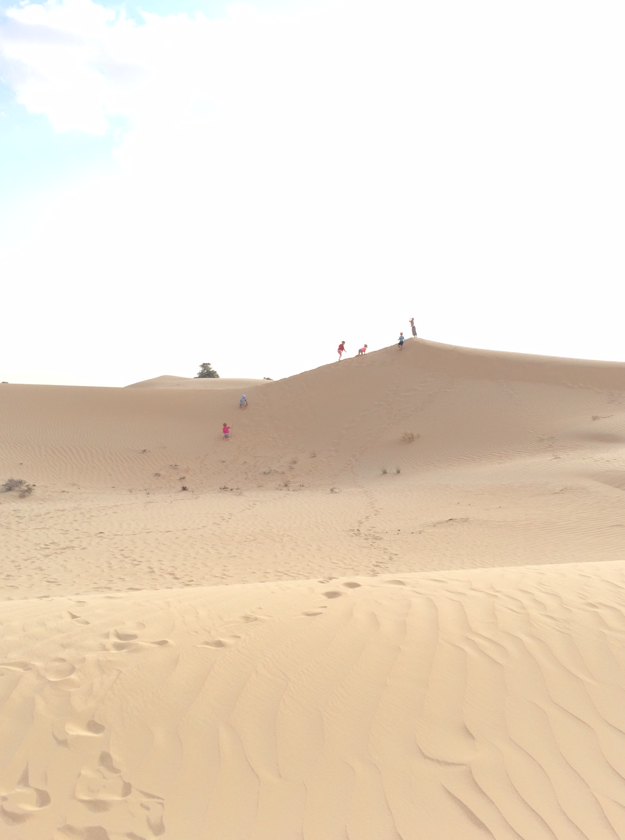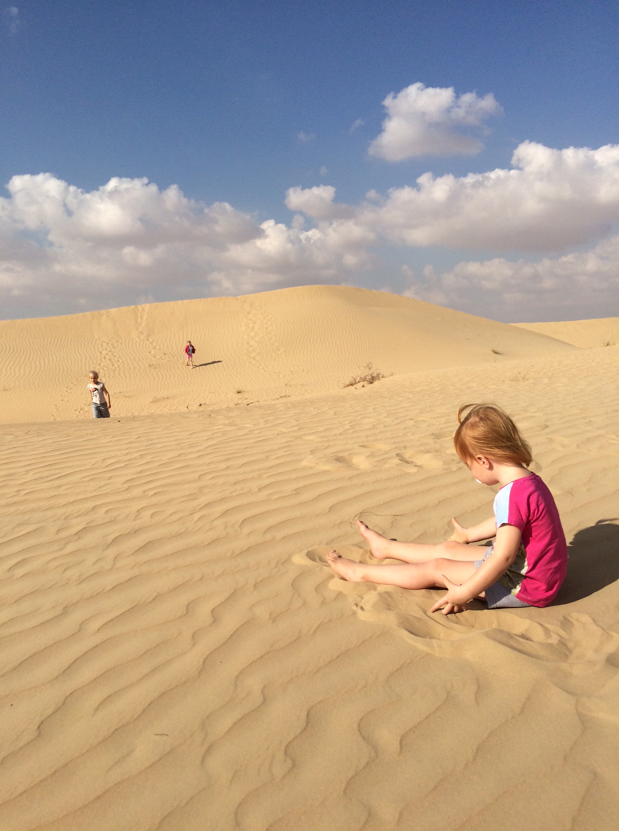 De voksne skiftes til at finde børnene, når de forsvinder bag endnu en stor bunke sand. Her er det mig, der kaster lange skygger i sandet, mens jeg spejder efter de opdagelsesrejsende.