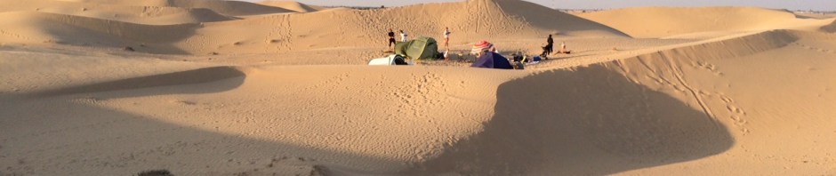 Vi tager pakkenellikerne under armen og vader hundrede meter ind i ørkenen, henover en sandbanke – og vupti, så er vi pist forsvundet for omverdenen i vores helt egen verden.