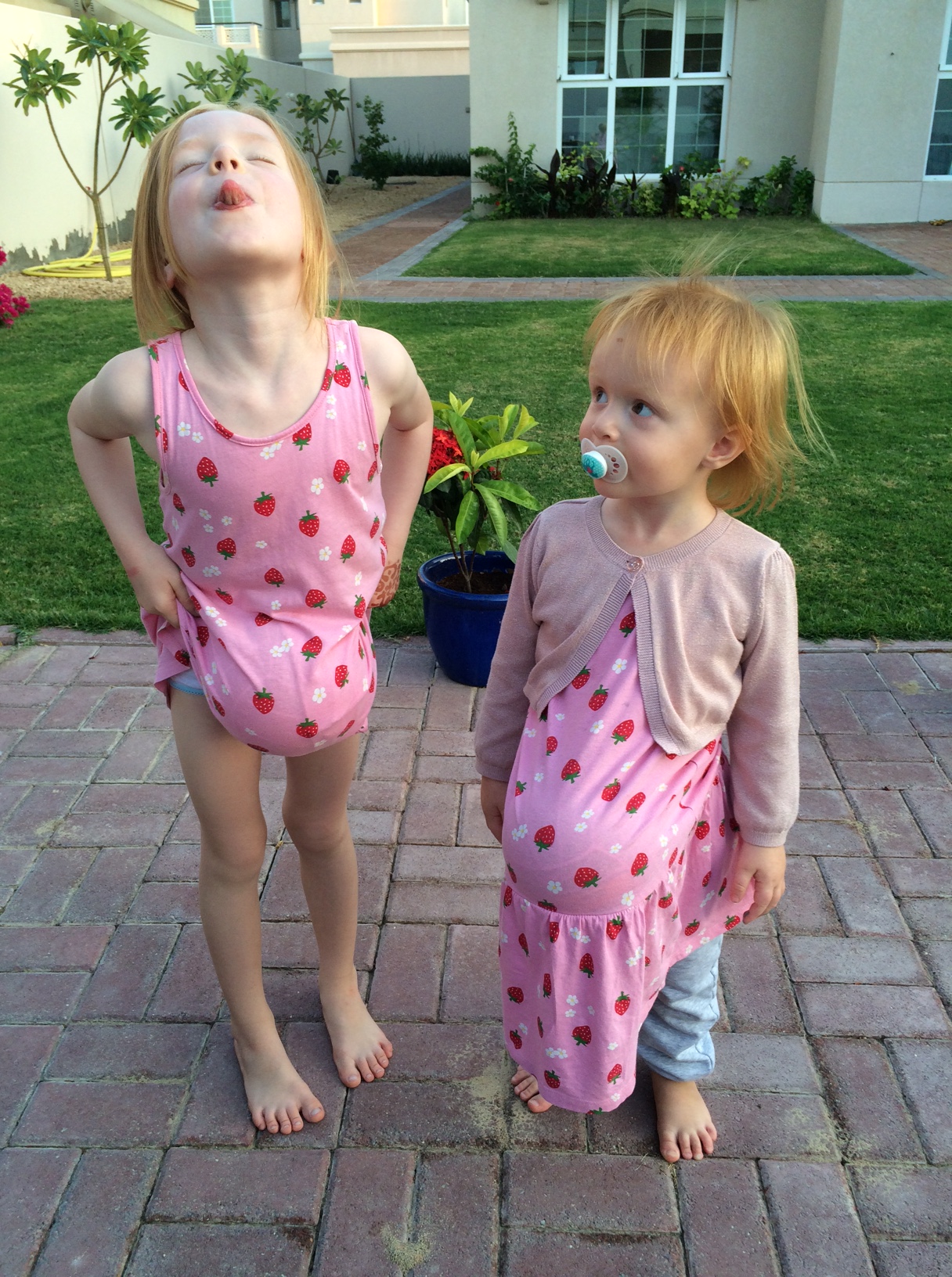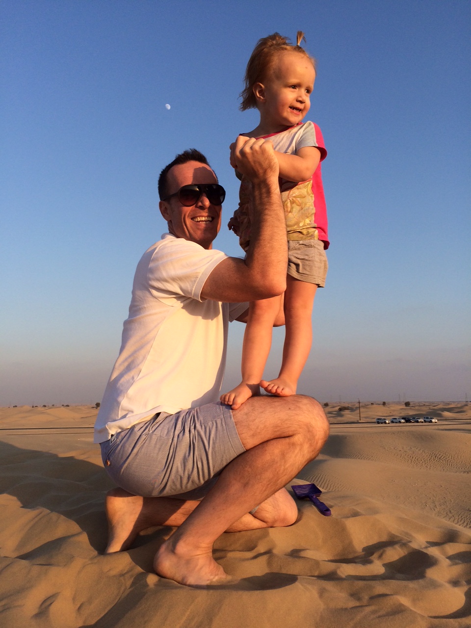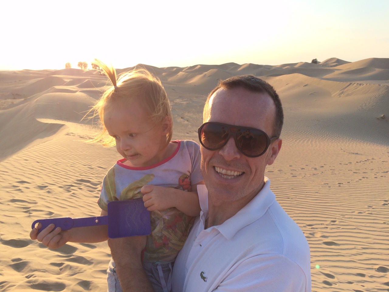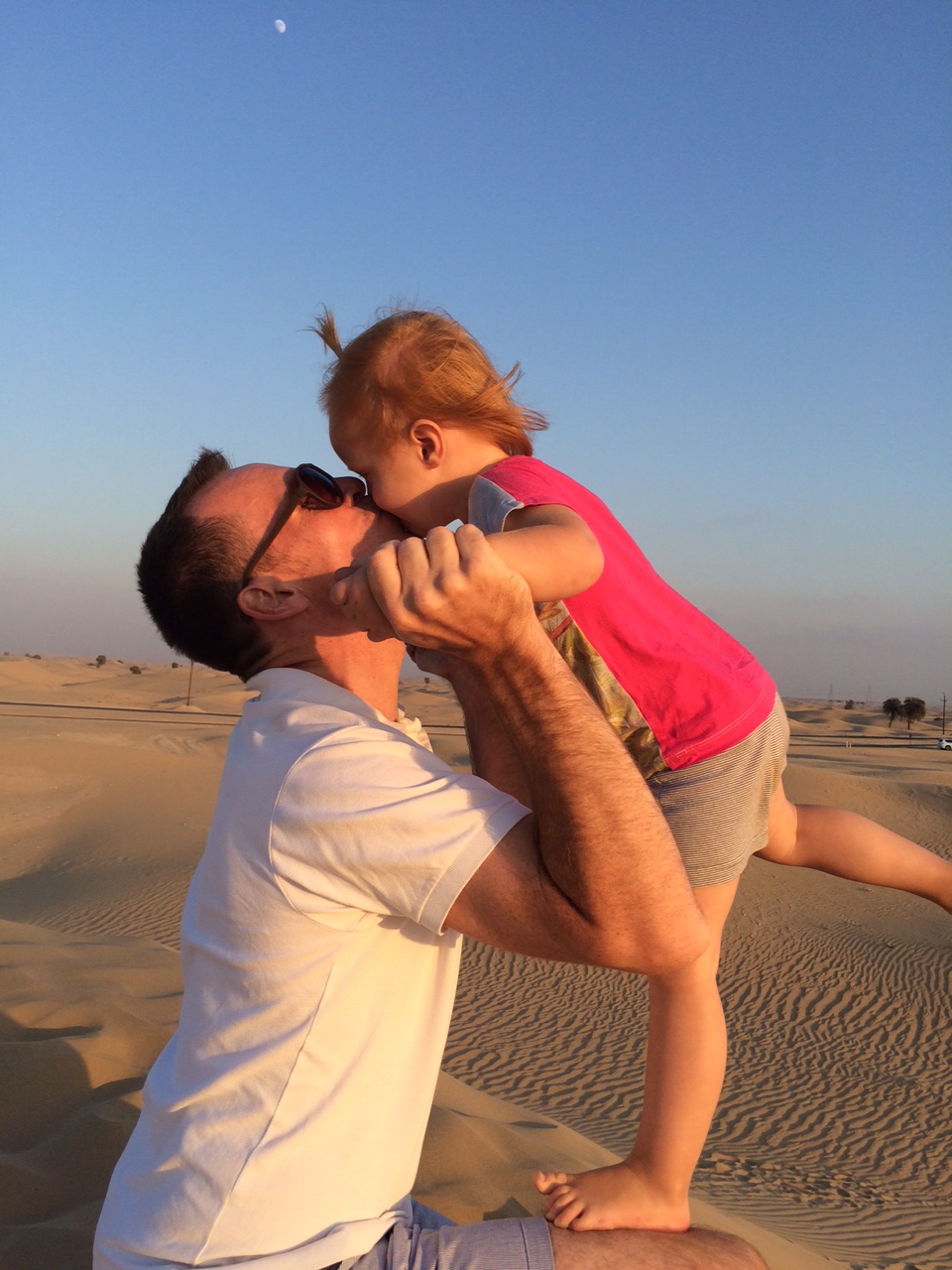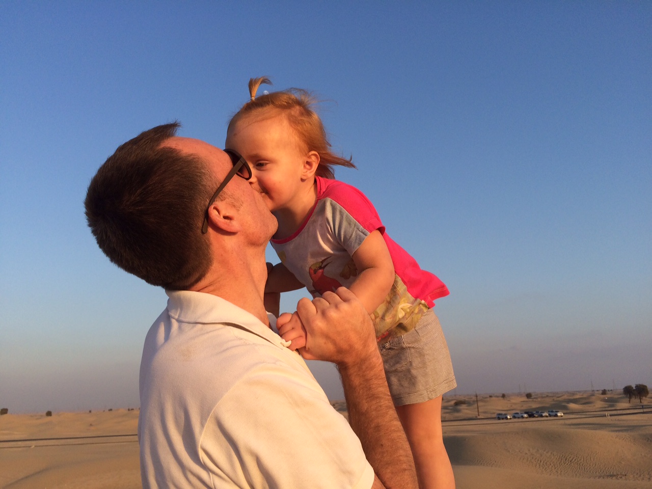 Ved 17-tiden insisterer solen på at gå ned. Jeg fanger Mille med sin elskede Daddy i dagens sidste stråler.