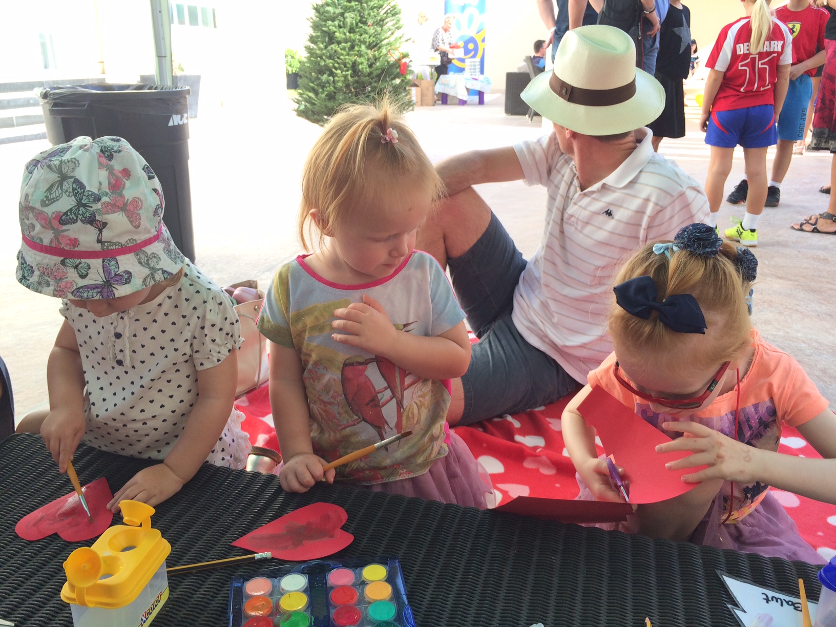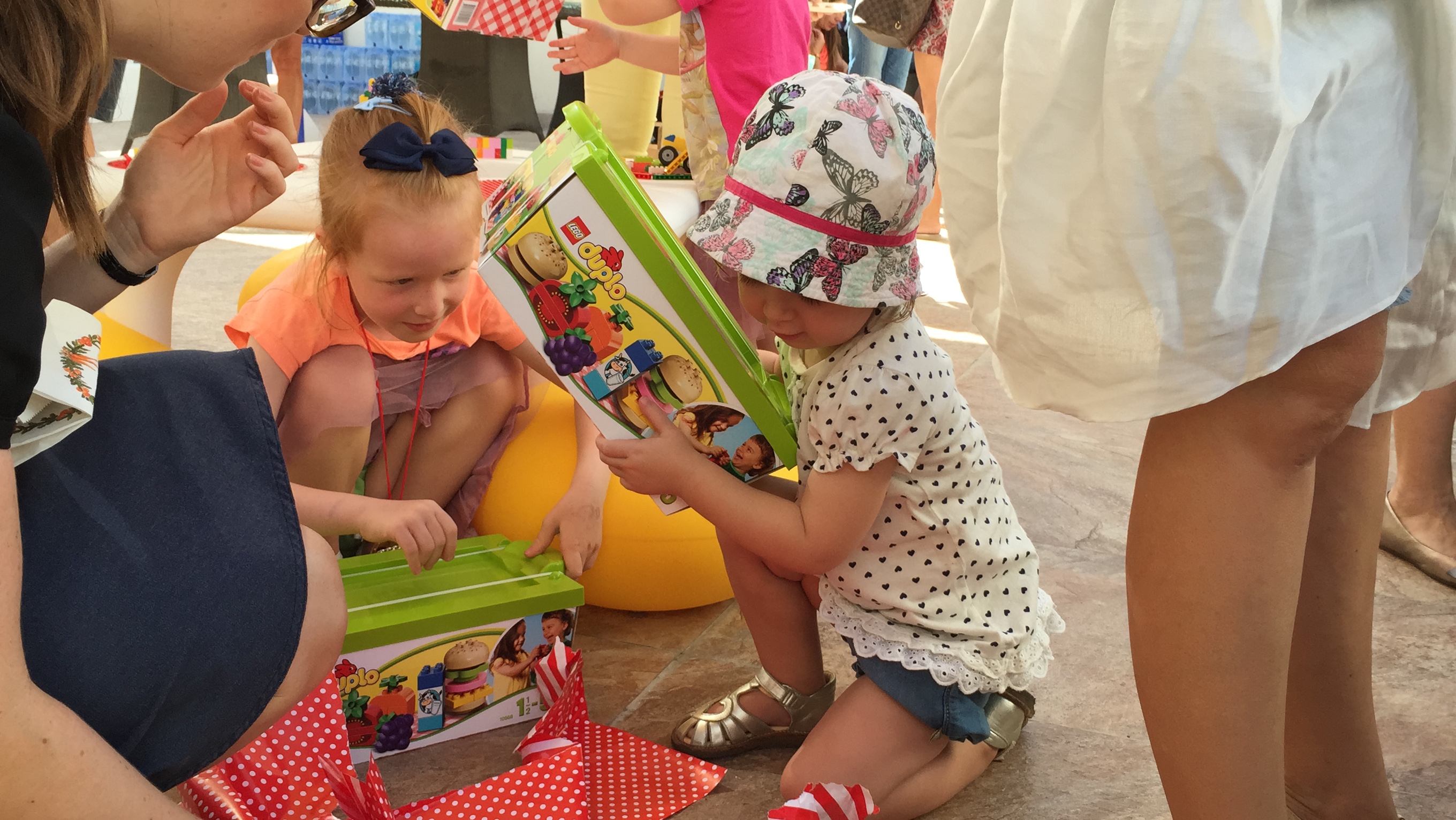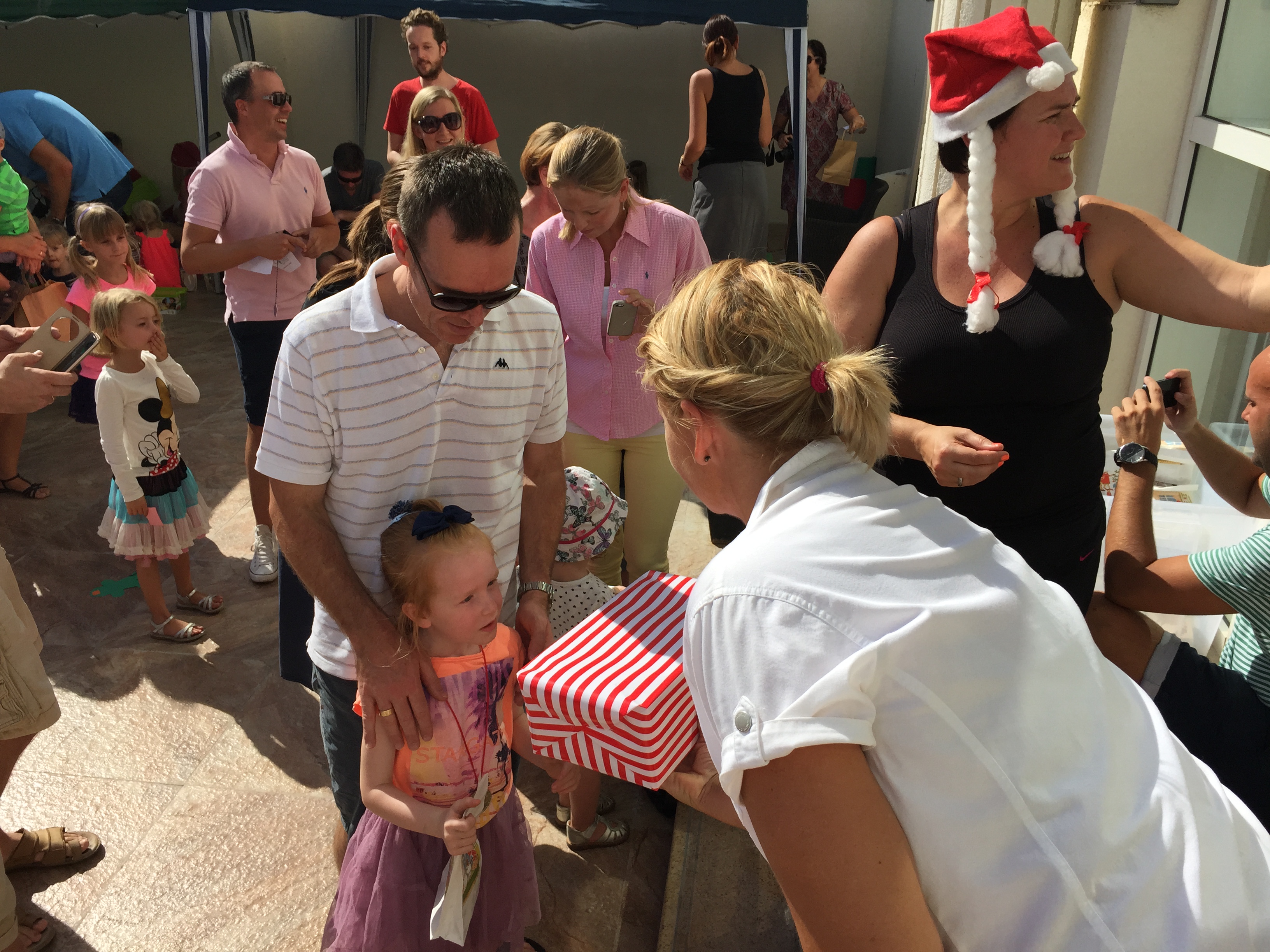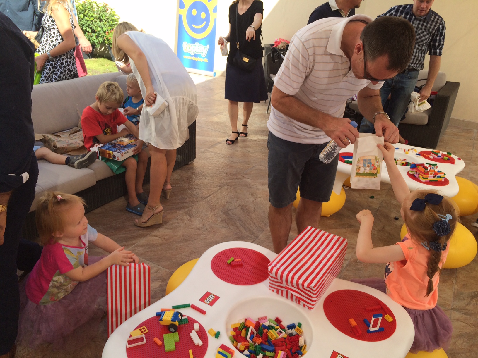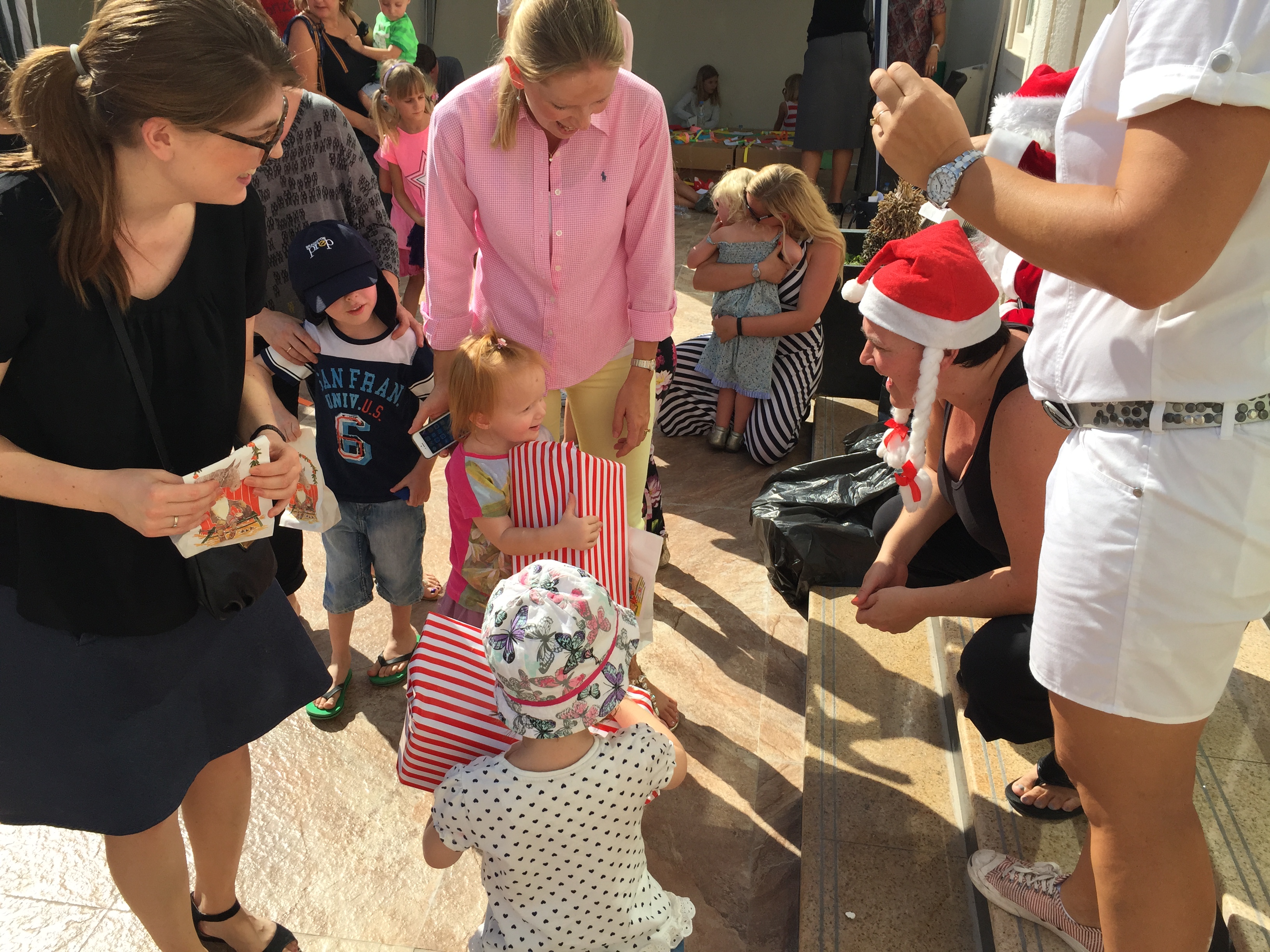 Vi er omkring 100 danskere med små børn til formiddagsfesten. Om eftermiddagen kører de samme show én gang til – for de lidt større børn.