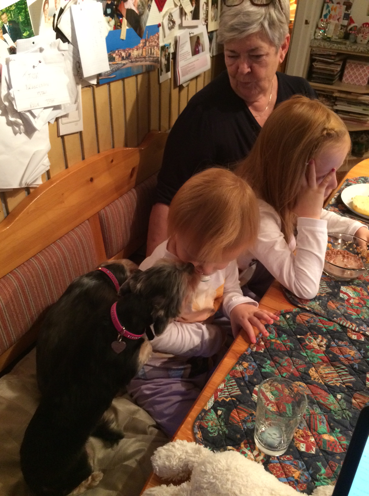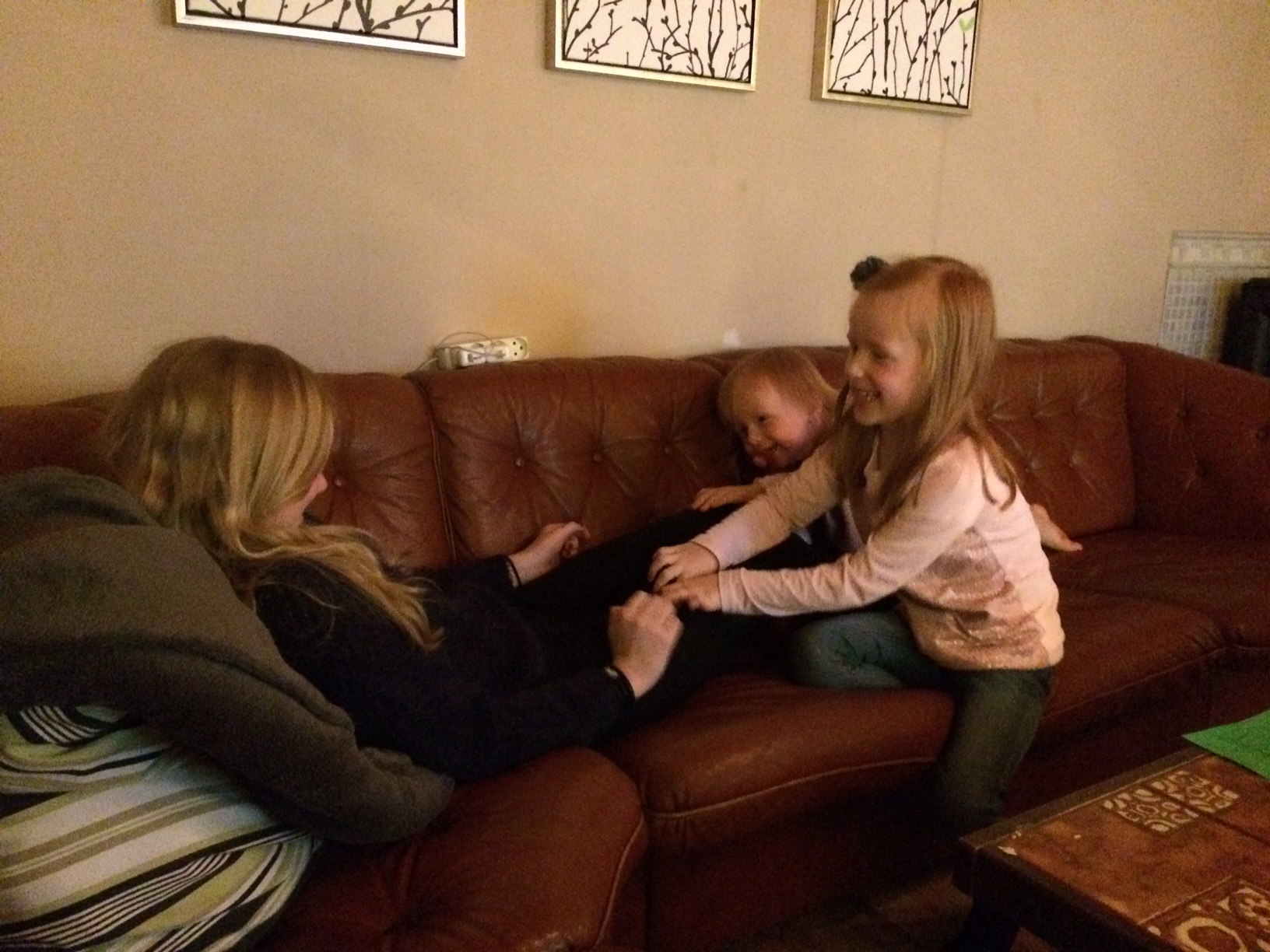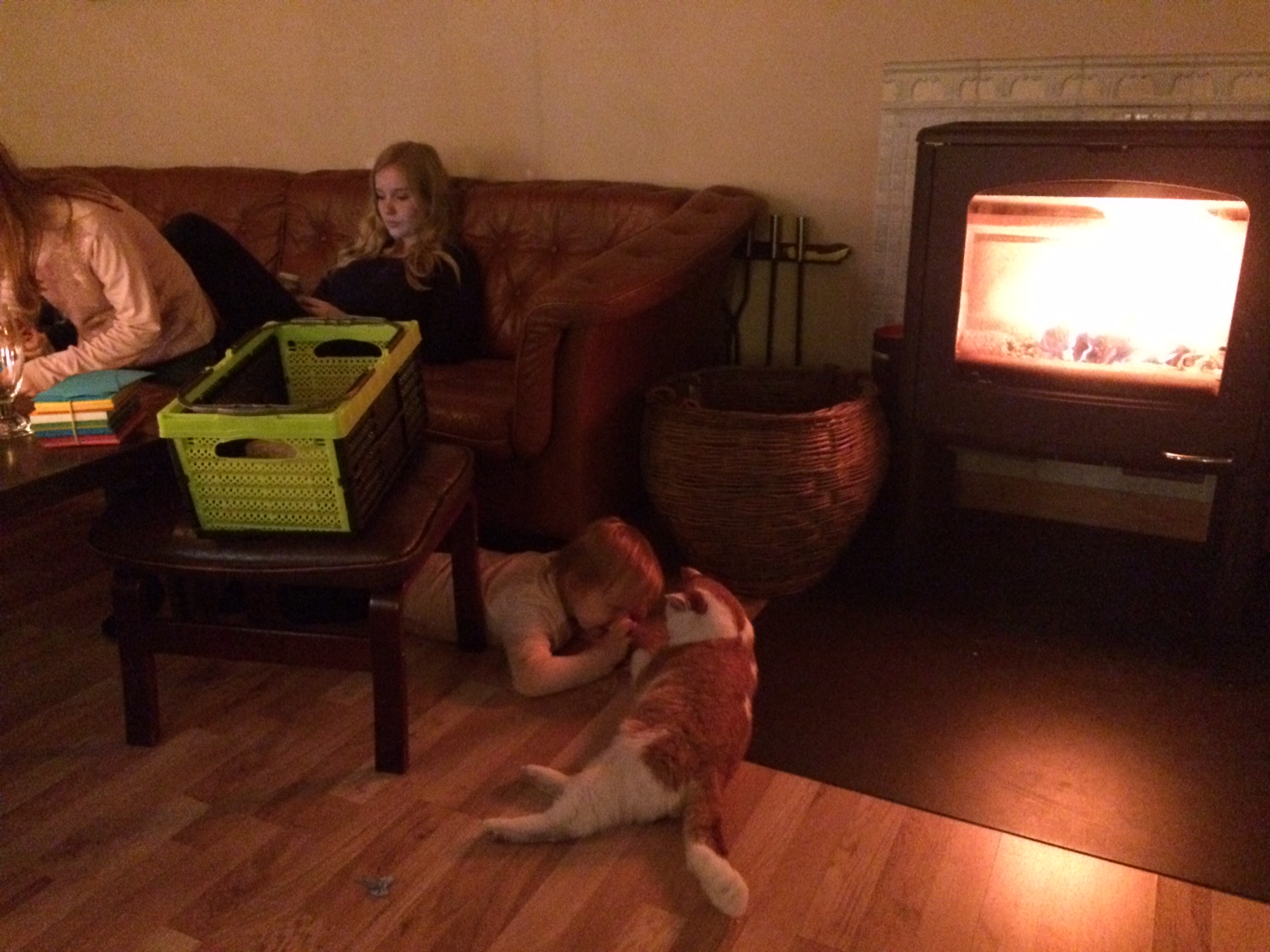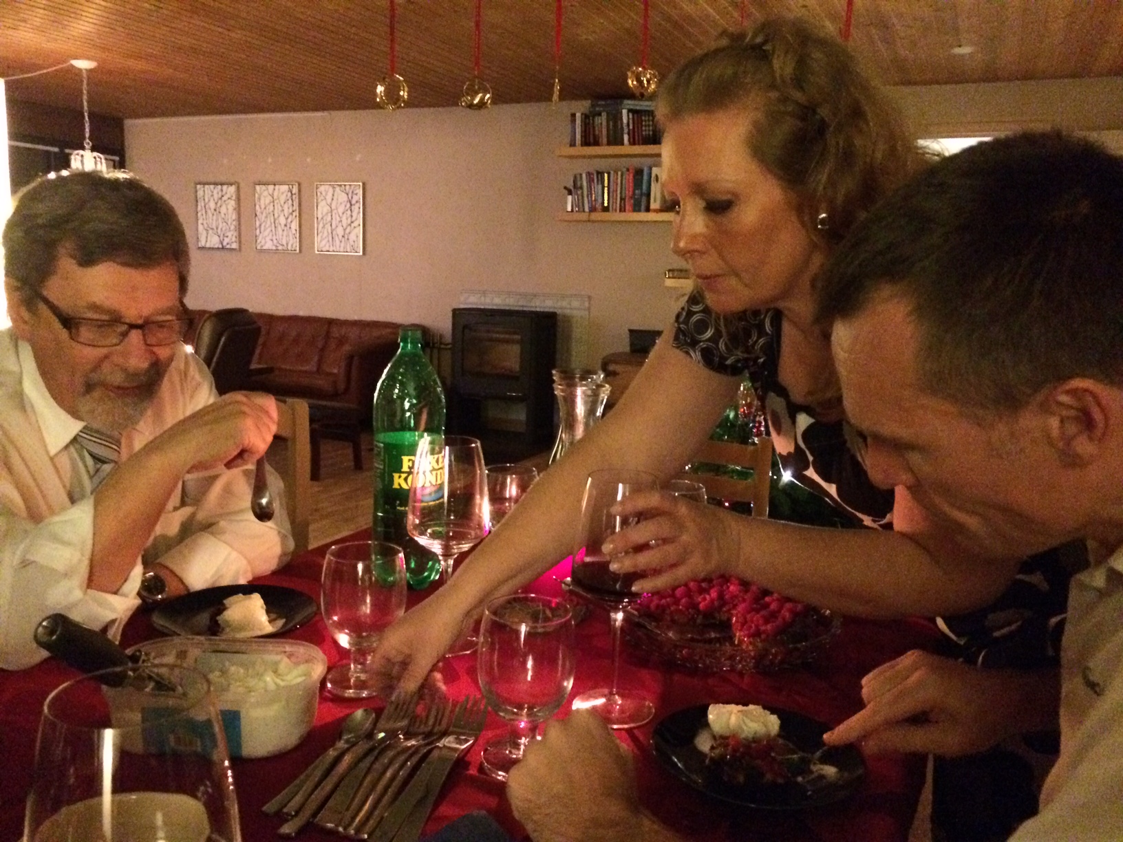 Om aftenen drøner vi hjem til Familien A. Det er fast tradition at vi ses lige op til jul. Børnene får gaver og vi spiser sammen. De bor – ligesom Farmor og Farfar – i overklasse-hippie-smørhullet lige uden for Hillerød med fri entré til Grib Skov.