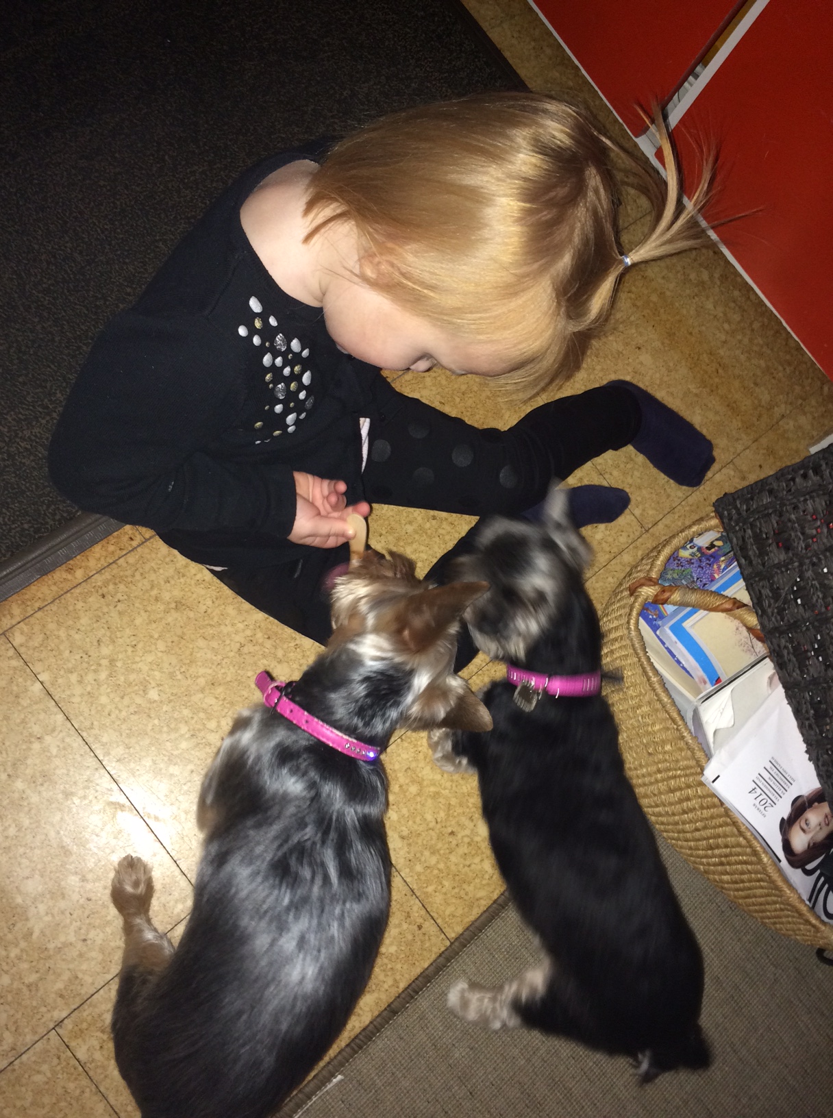 Mille fodrer hundene med resterne af en Magnum-is, som hun opgiver at spise færdig.