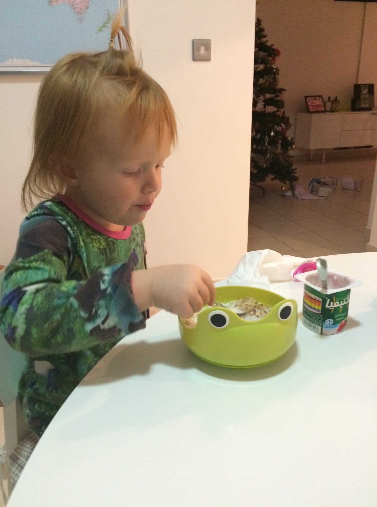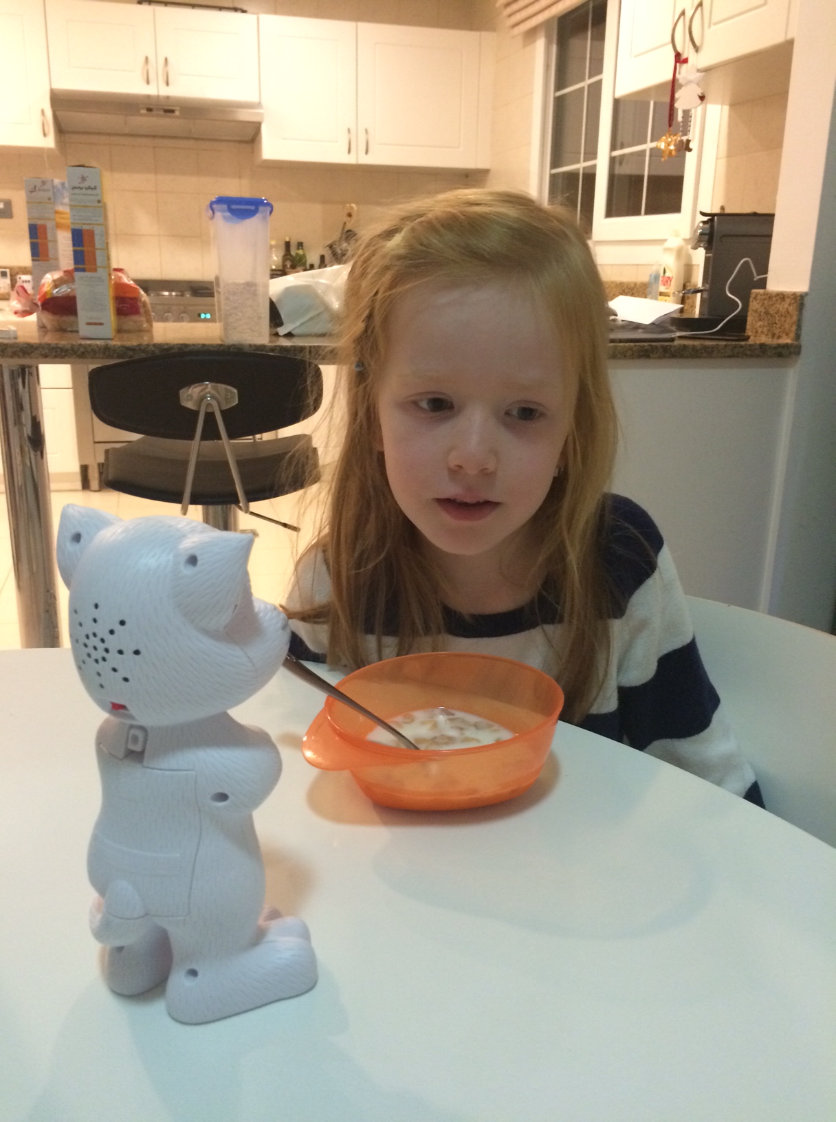 Cille laver lækre pandekager til os med sin Rasmus Klump-app.