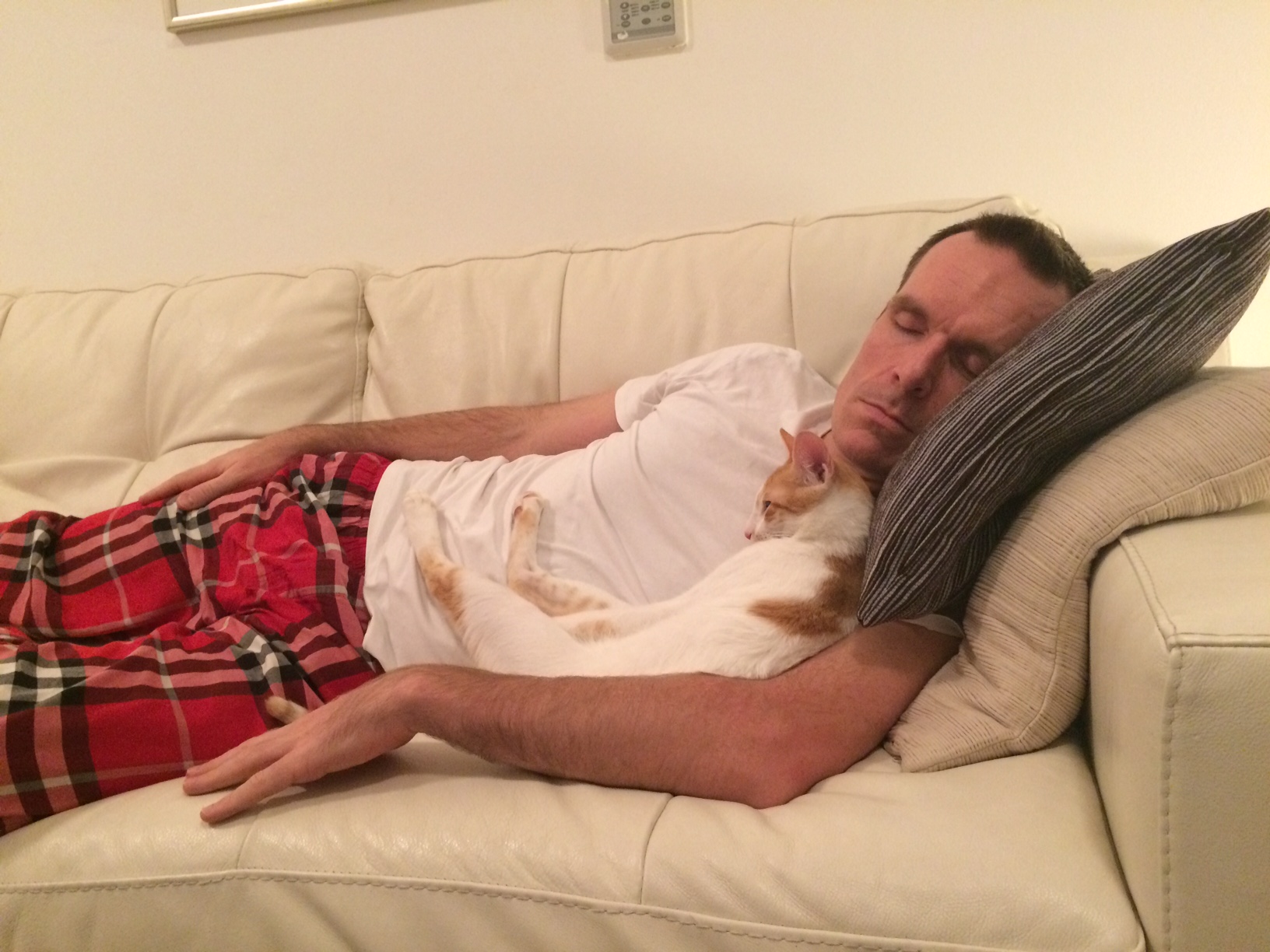 Martin har fuldstændig overgivet sig til Bob. De ligger som 2 elskende i sofaen og spinder.