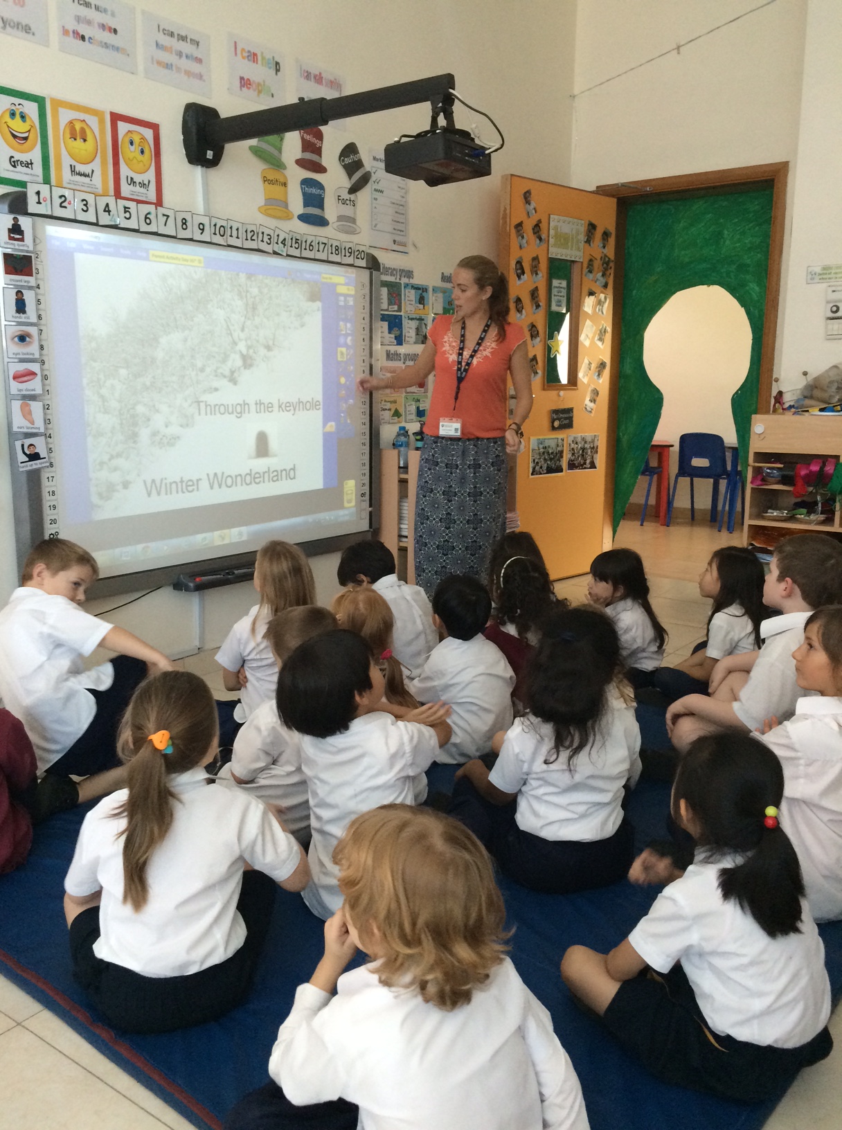 Miss Greenwood forklarer os, at børnene selv har valgt at de vil lave klasseværelset om til et vinterland med pingviner og en iglo af pap i et hjørne – komplet med soveposer, uldtrøjer, vanter, campingudstyr osv.