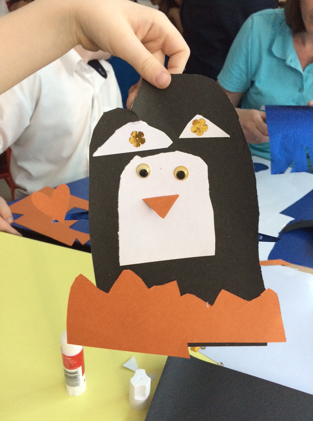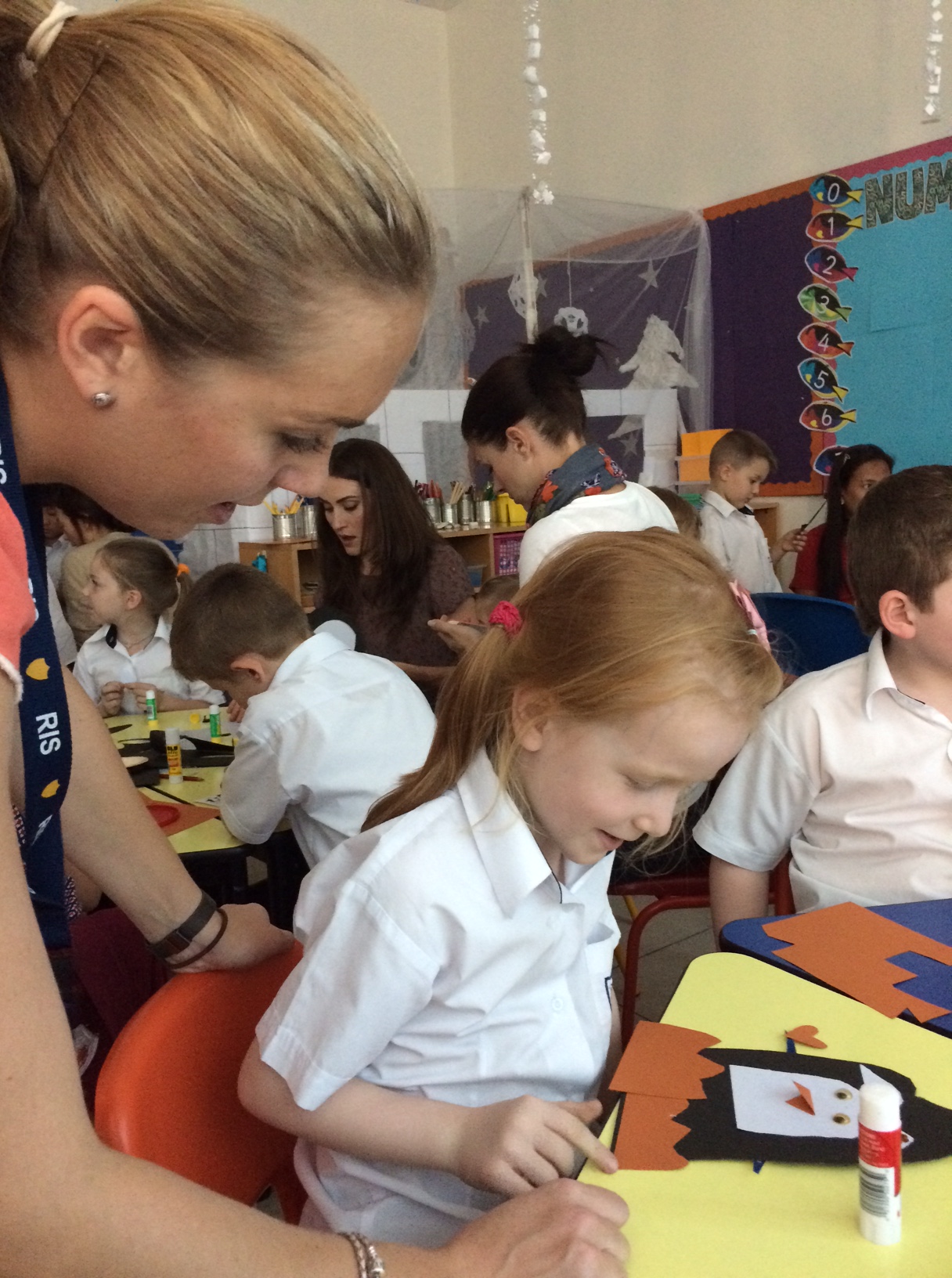 IMG_5231Cilles kreative hænder producerer så let som ingenting en lille pingvin, mens jeg forsøger at hjælpe nogle af de børn, hvis forældre ikke er kommet.