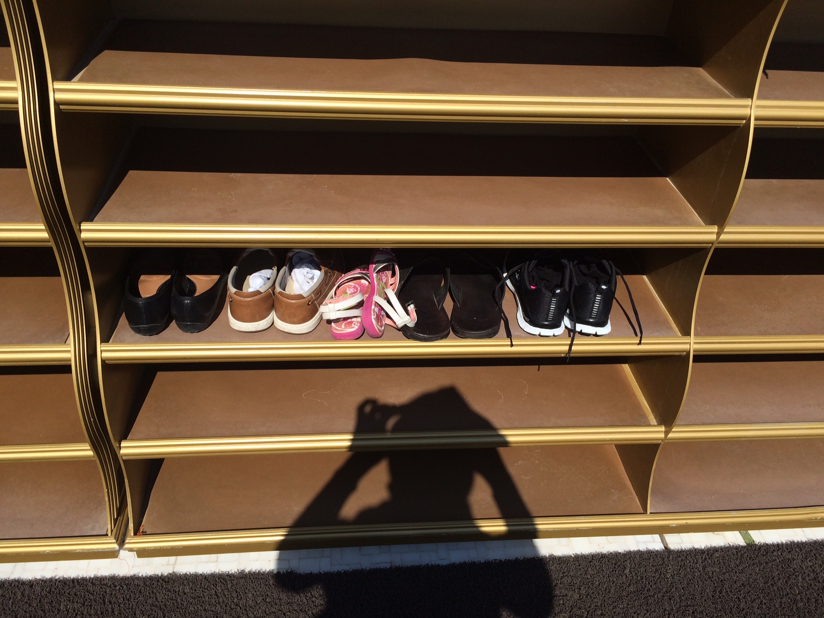 Men vi har 2 små børn med, så turen går videre. Først stiller vi (træ)skoene.