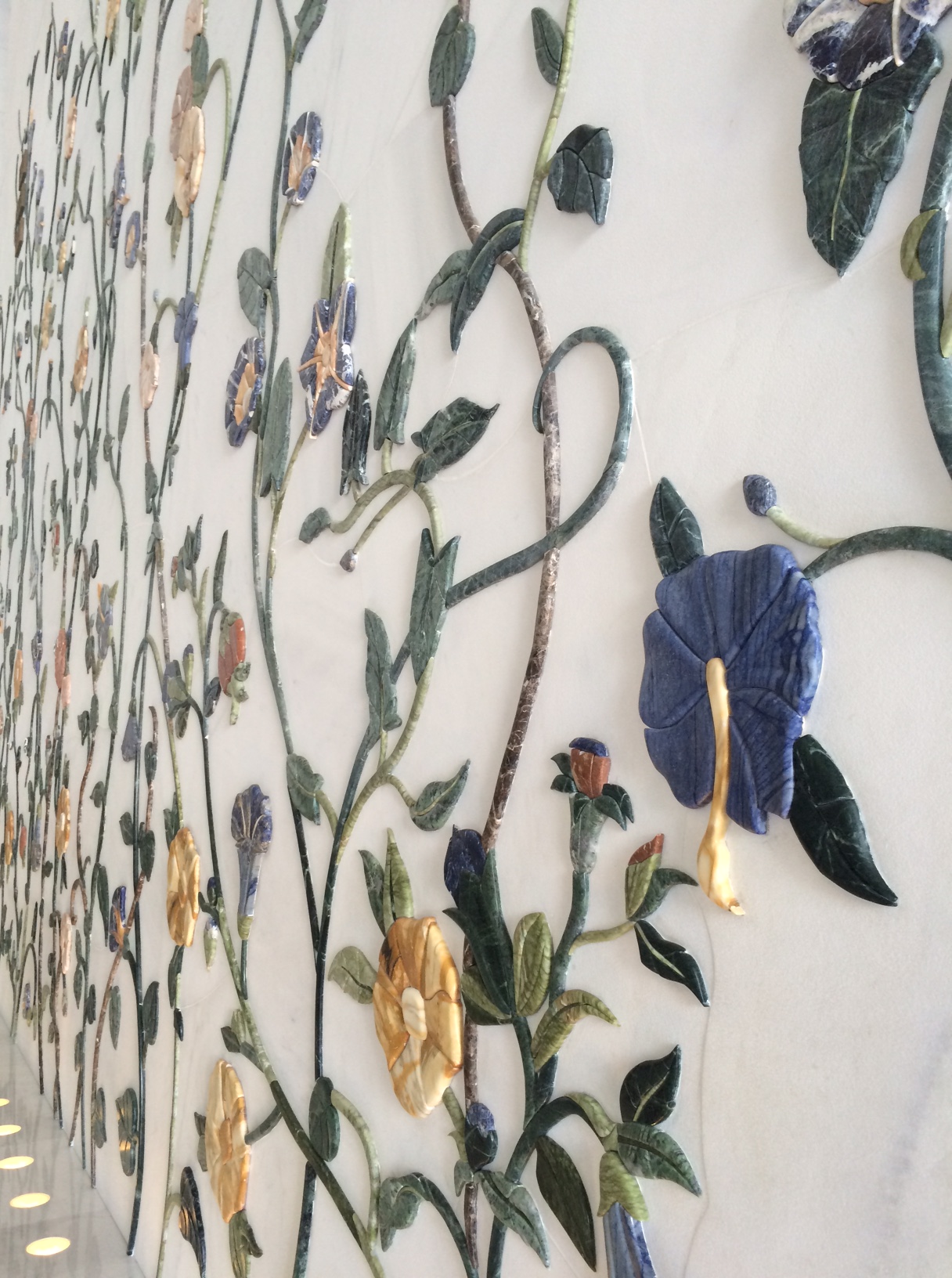På marmoren. På udskæringerne. På faconerne. På mønstrene.