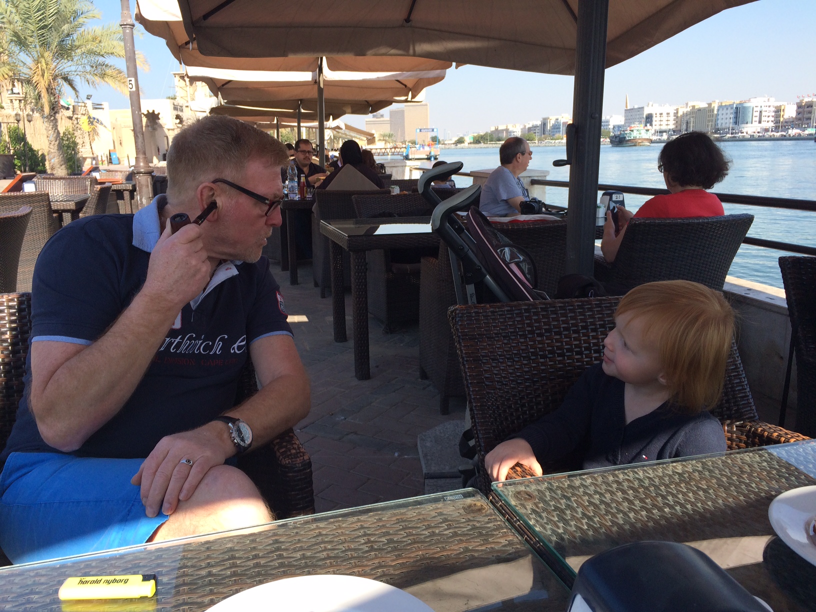 Morfar nyder, at rygning er en aldeles liberal aktivitet i Dubai.
