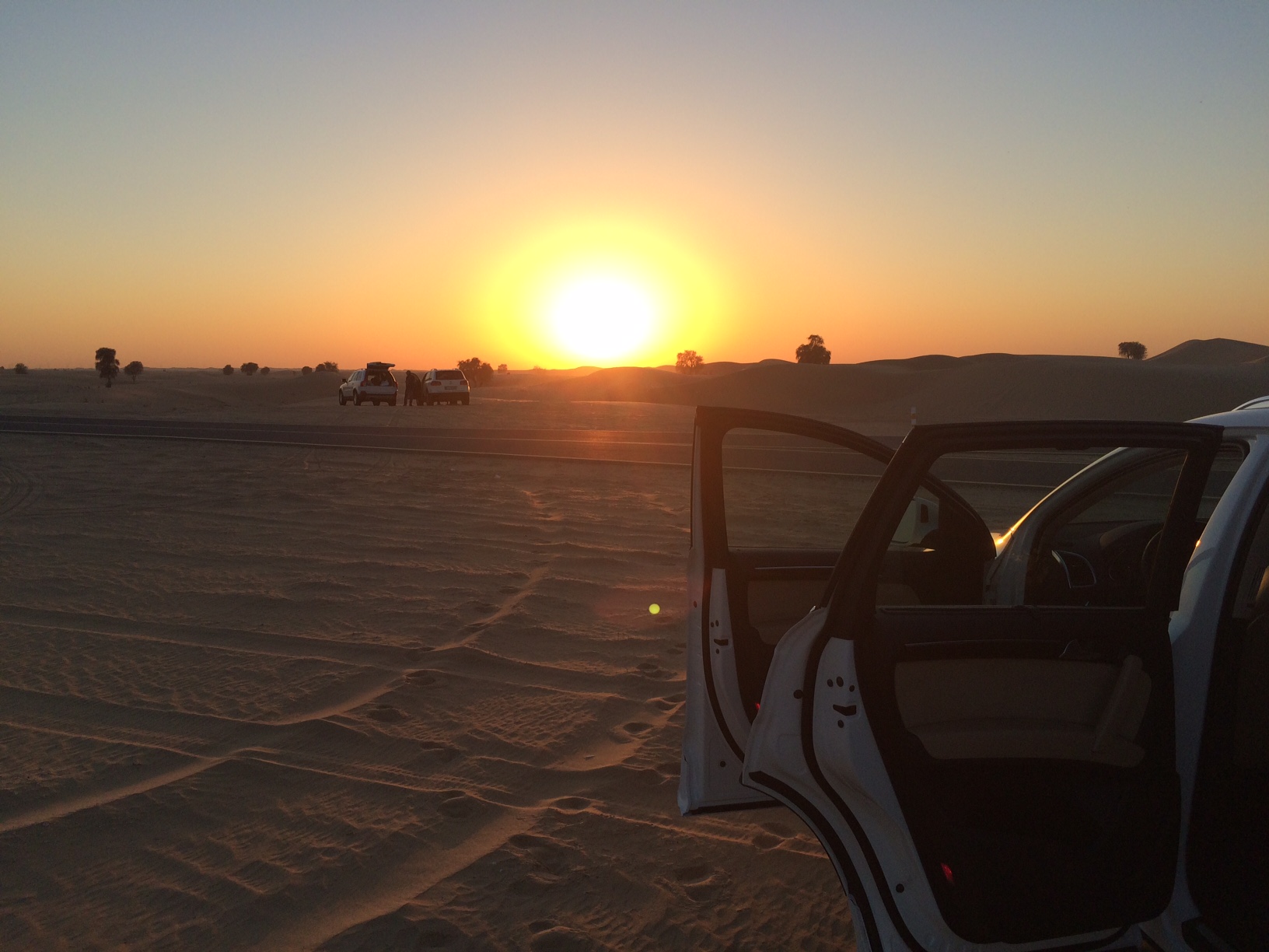 Jeg bliver aldrig træt af at se på hvordan skyggerne bliver længere i solnedgangen og hvordan ørkenens farver ændrer sig dramatisk.IMG_5419IMG_5430IMG_5422Da klokken nærmer sig seks, begiver vi os retur til bilen, der står parkeret i vejsiden.