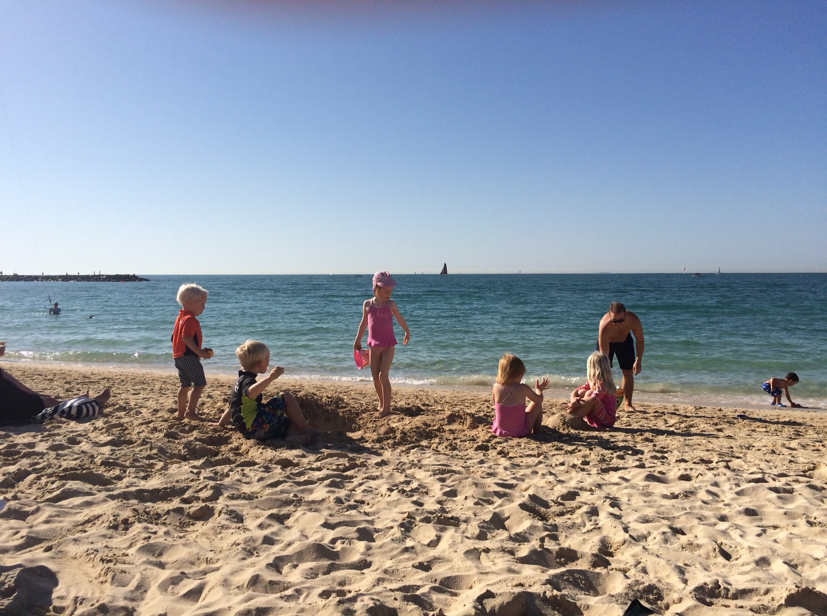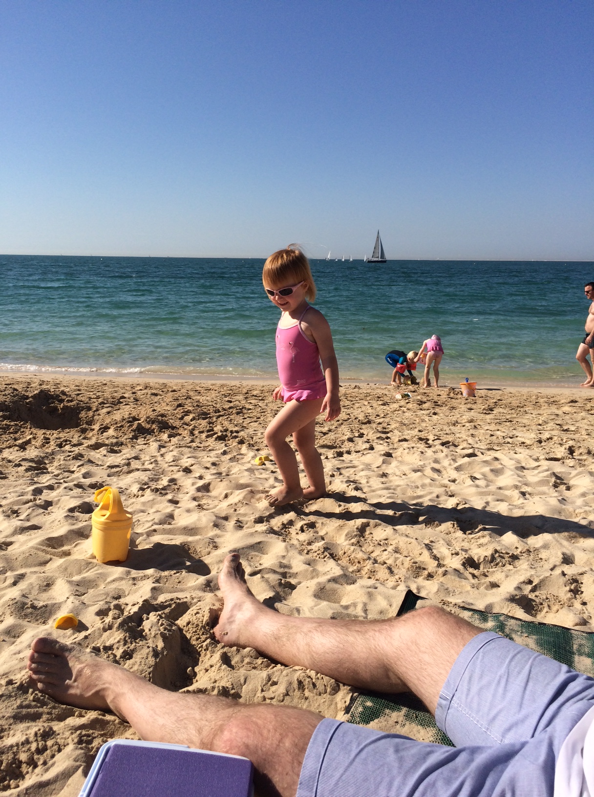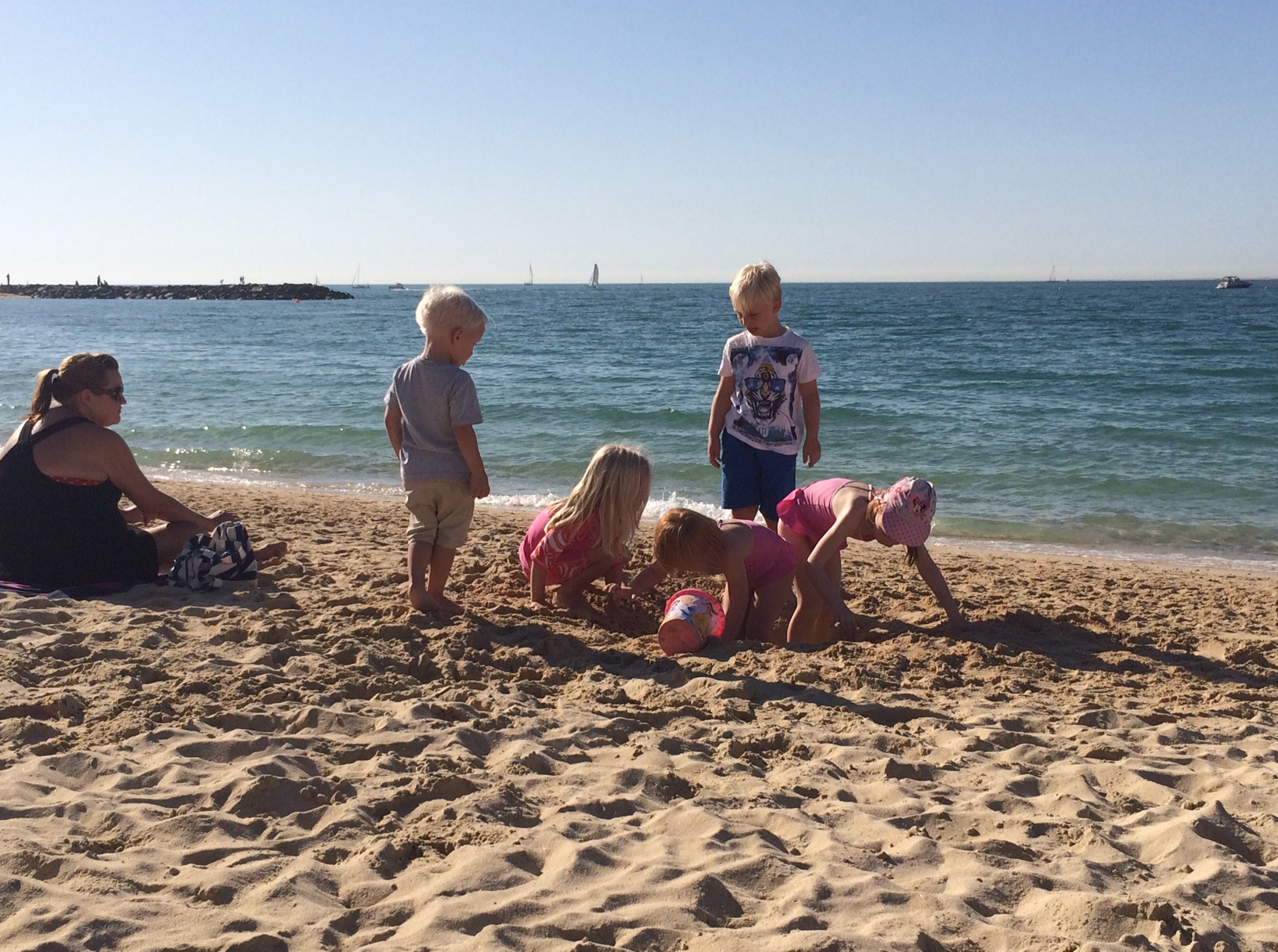 Hun synes at det er svært at klatre i sandet og sætter kun efter Cille, hvis bakken er forholdsvis lav.IMG_5415Resten af tiden holder Mille hof sammen med Conny på tæppet.