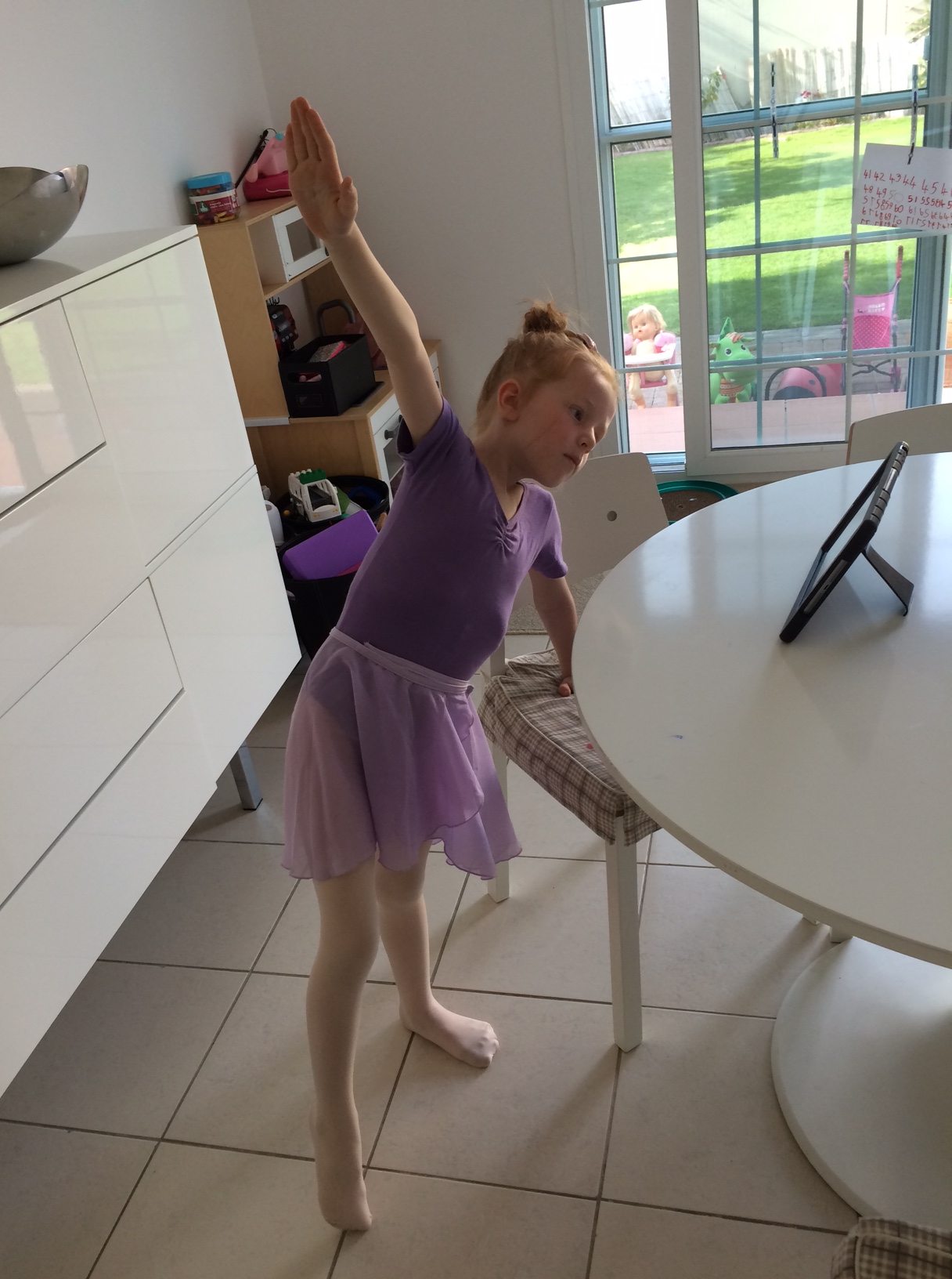 Jeg banker på døren ind til ballet-studiet og afbryder den lille piges dansetime.