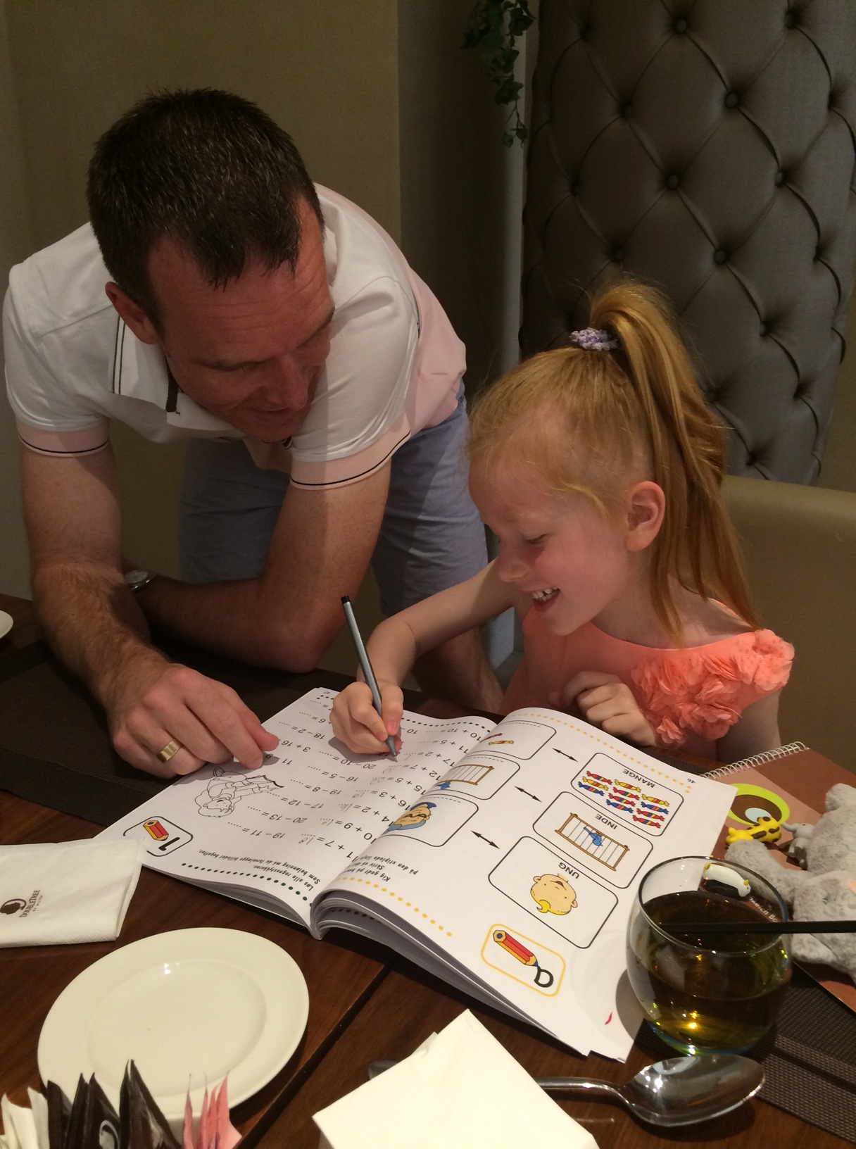 Her til morgen spiser vi nybagte vafler og laver regnestykker, mens vi langsomt vågner til endnu en dag i pool og hav.