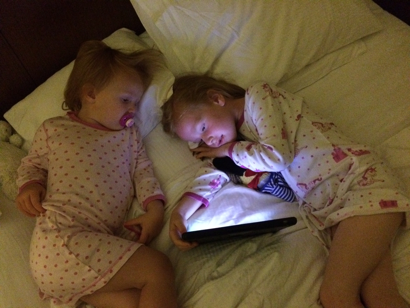 Hun bestak pivedyret med Peppa Pig på iPad i en halv time, som de sad og så sammen, indtil Mille var træt nok til at lægge sig til at sove, selvom hendes Mummy var gået.