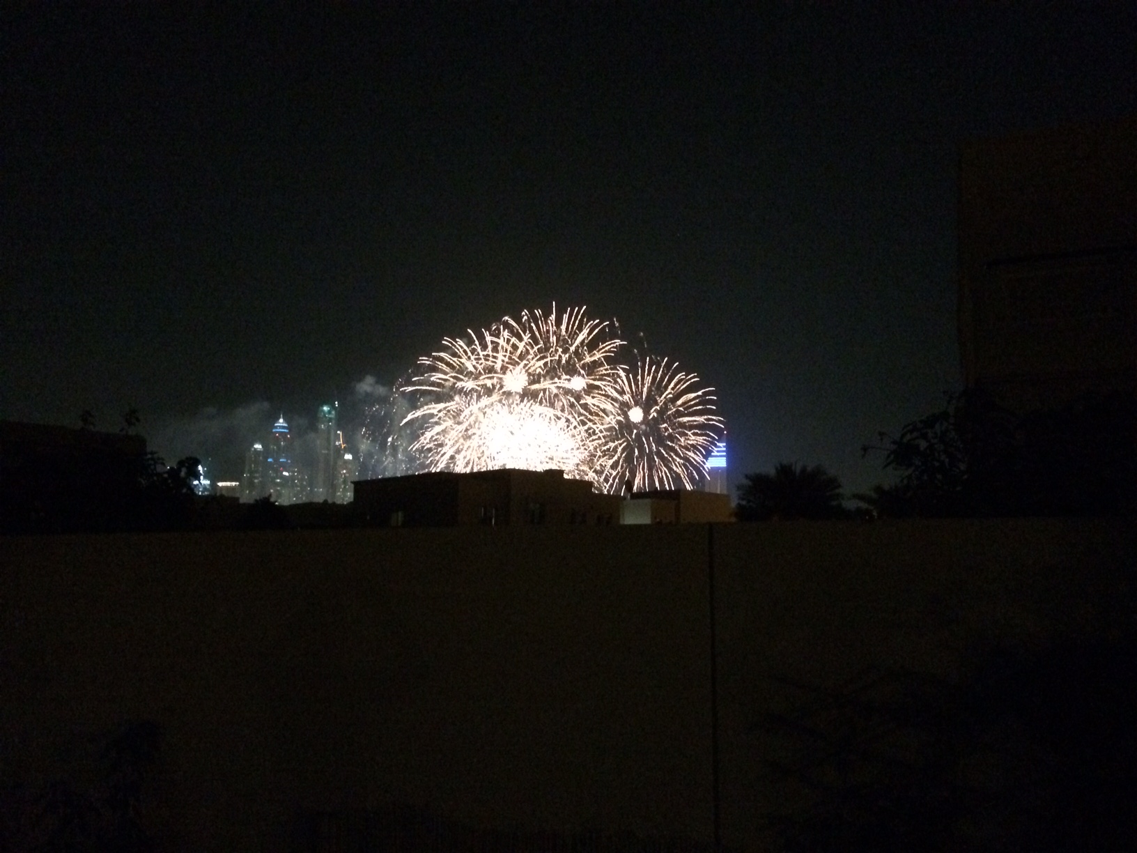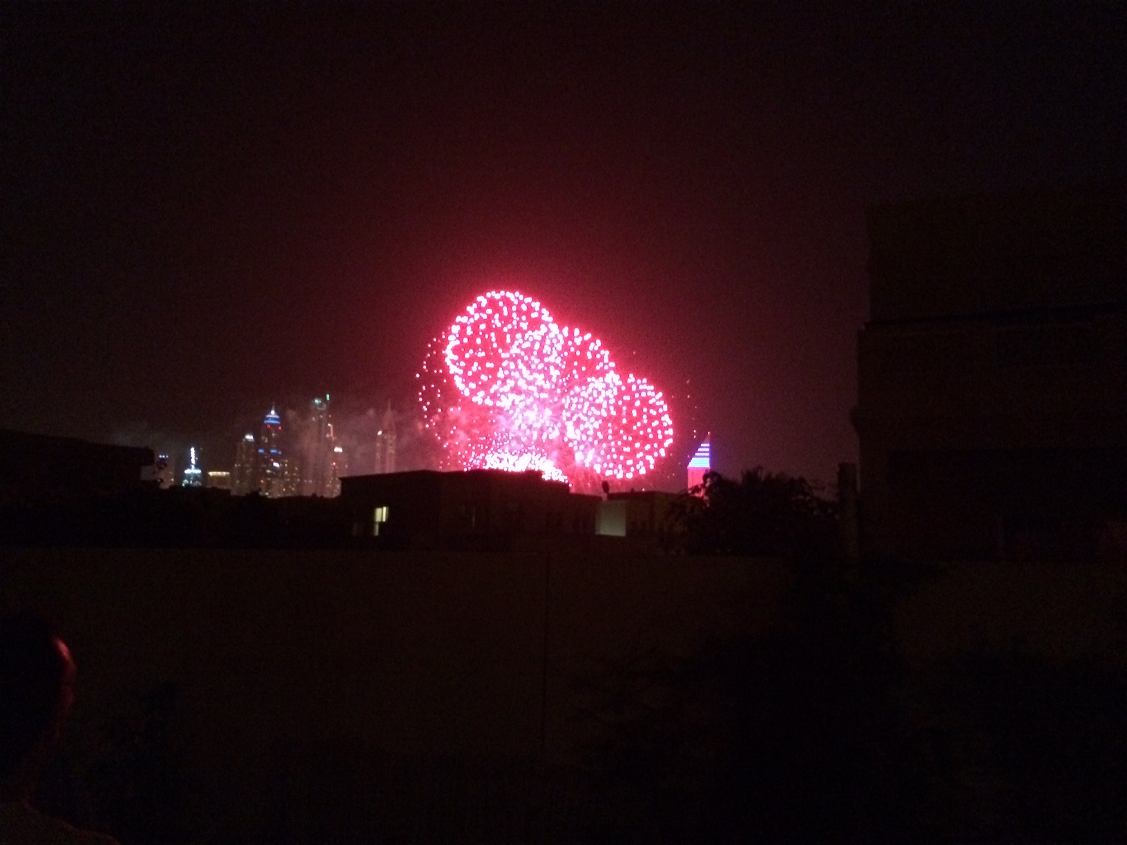 Senere er der kæmpe fyrværkerishow ind over Dubai’s skyline, som vi betragter sammen på rad og række.