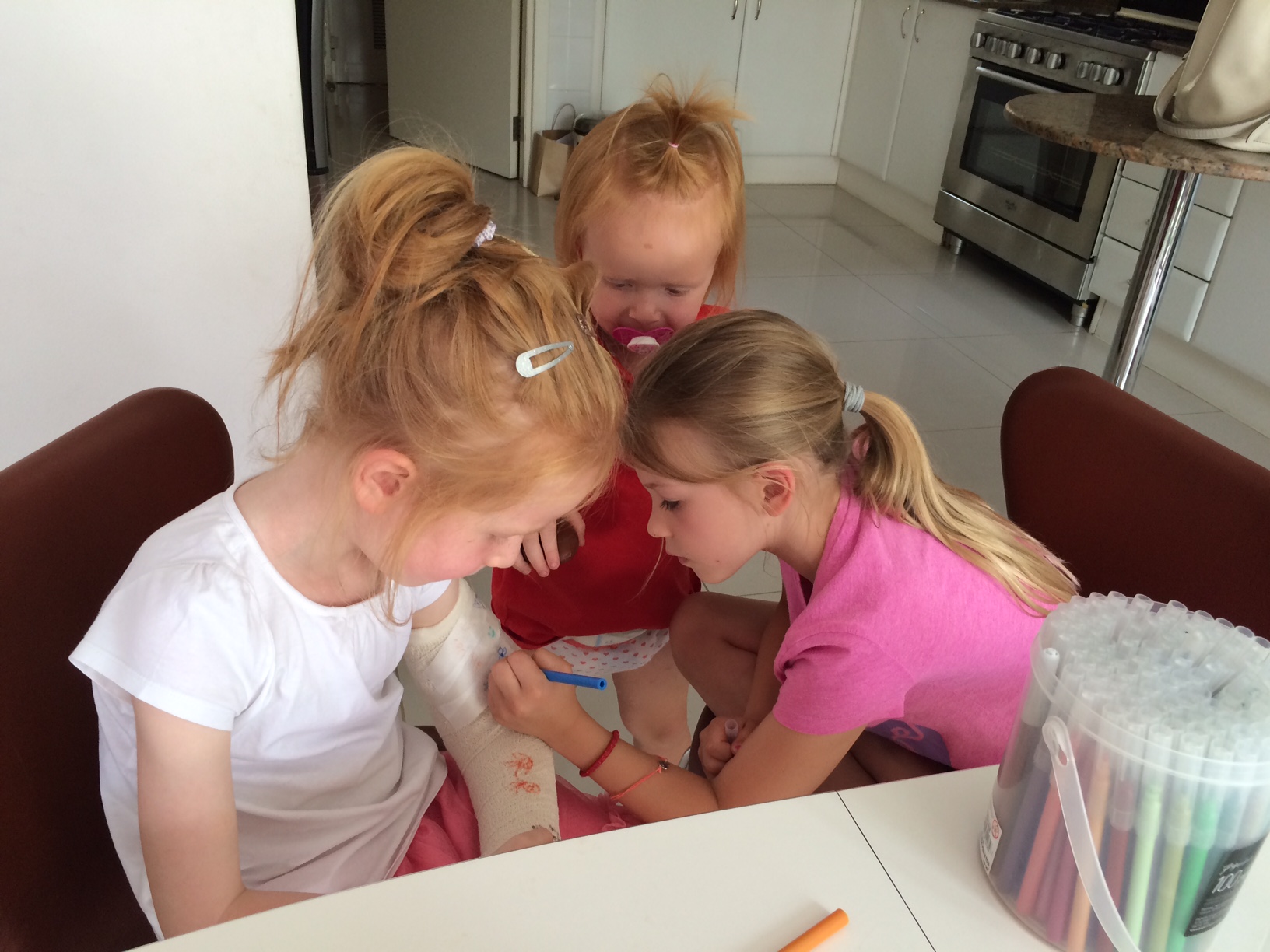 Hvor er det smukt og indfølende skrevet! Sikken et kaos I har været igennem! Chock og fortvivlelse. Men I er så gode og kærlige forældre, det mærker man ved hvert indlæg! God bedring med albuen! Sikke skønne døtre I har!