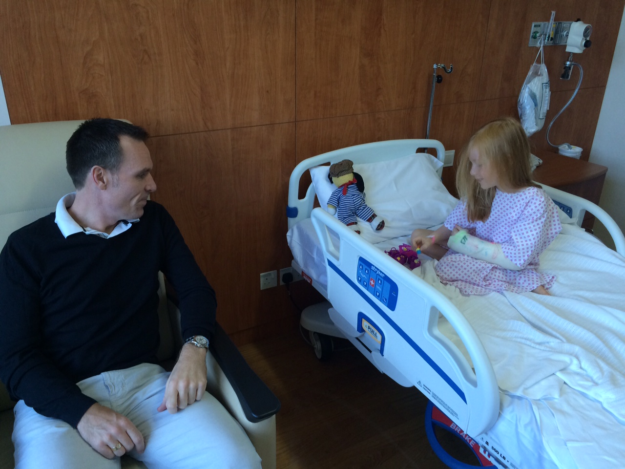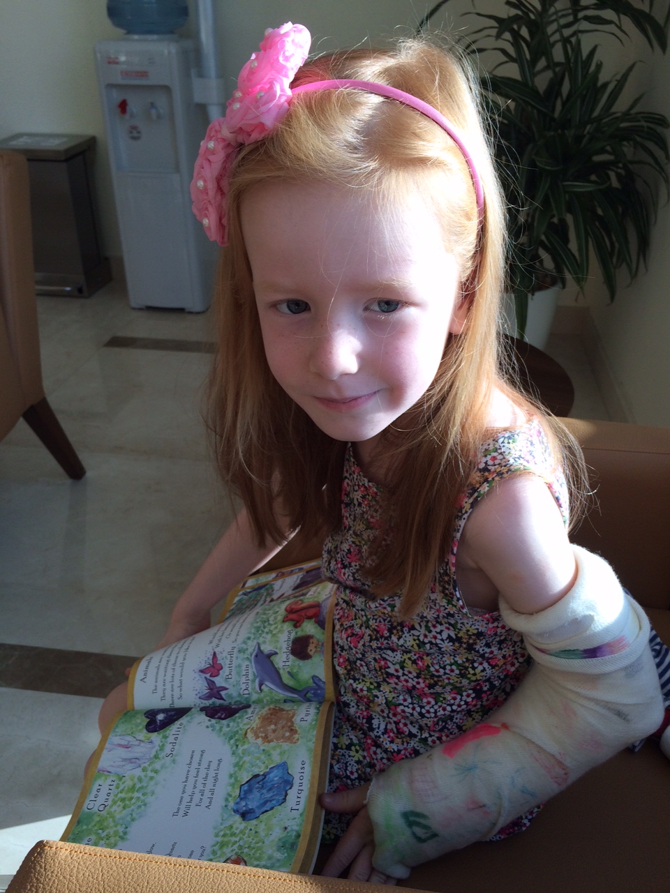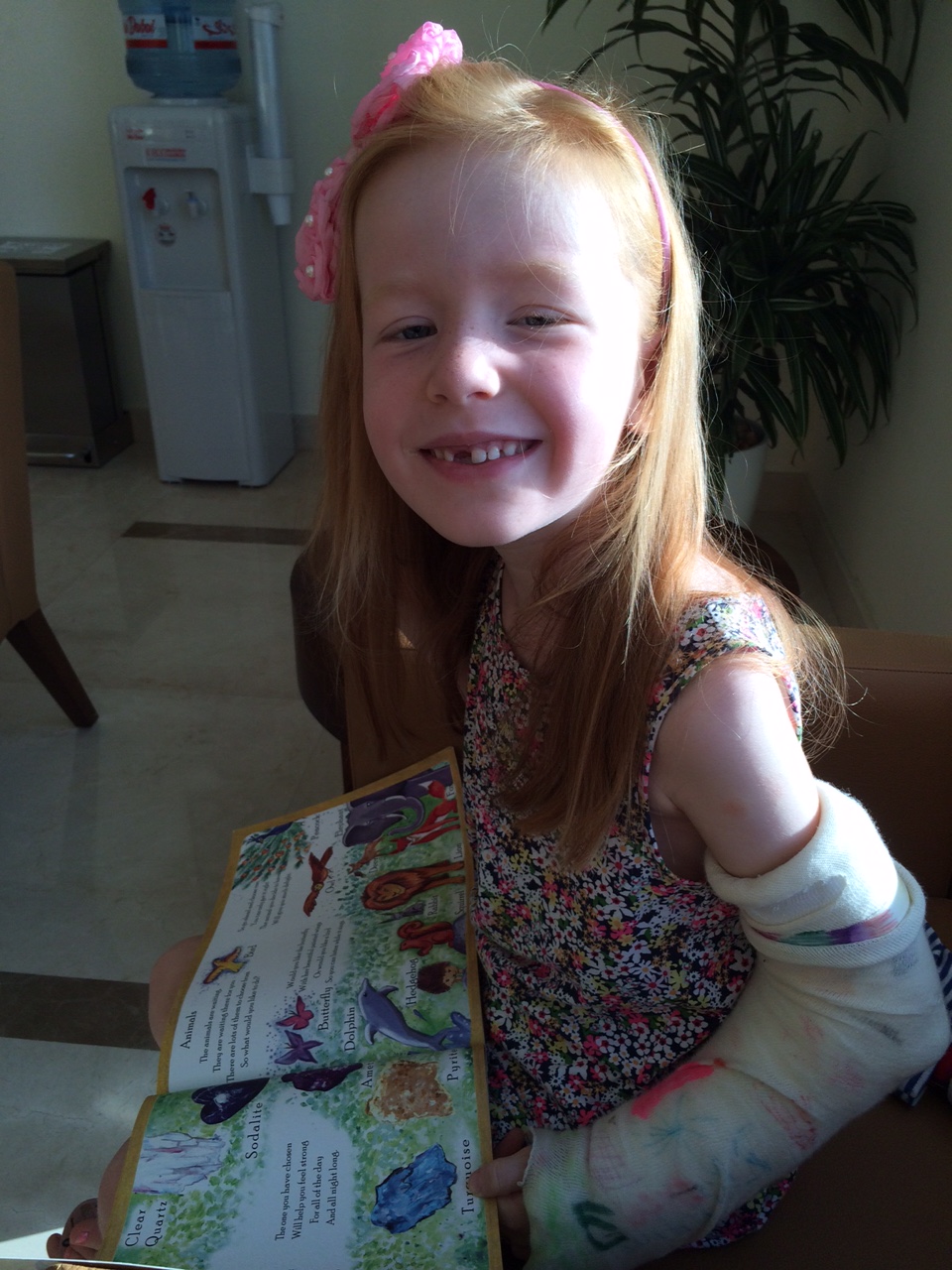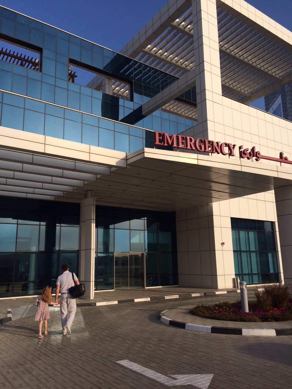 Vi er ankommet til Al Zahra Hospital for at få fjernet de 3 k-wirer, der har holdt bruddet på Cilles albue sammen i de sidste 3 uger.IMG_6768Der er altid en del papirarbejde at vente på – også selvom forsikringsselskabet har forhåndsgodkendt operationen.