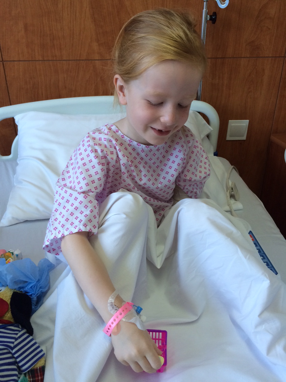 I mens læser vi “My Magical Garden” i venteværelset.IMG_6769 IMG_6770Kort tid efter bliver vi ført op på sengeafsnittet.