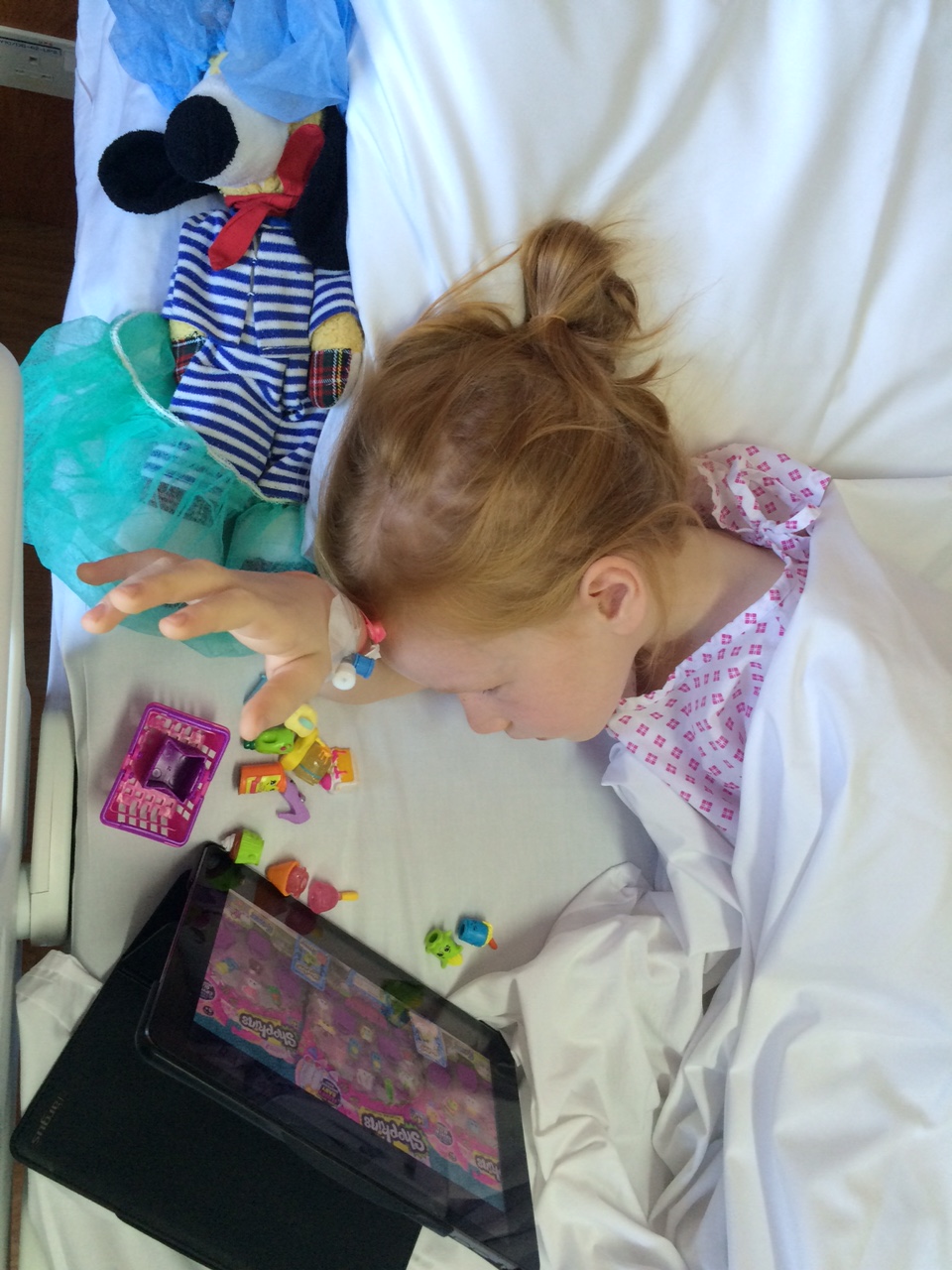 Det varer ikke så længe, før patienten vågner – og selvom hun er træt, så kan hun stadig lege lidt med sit nye legetøj.IMG_6780 IMG_6781Hvis ikke man har kvalme af narkosen i forvejen, så kan man altid få det af dagens servering.