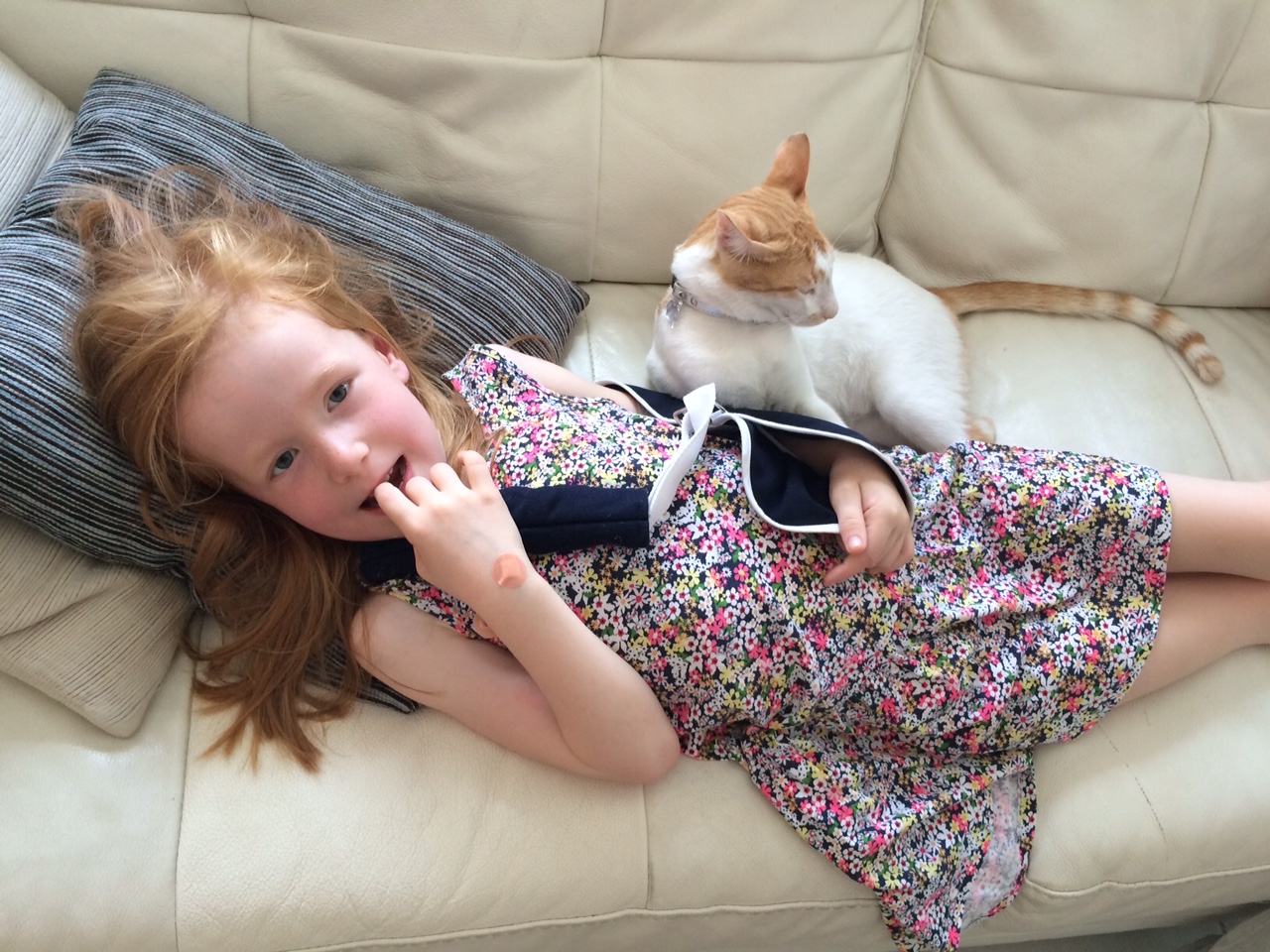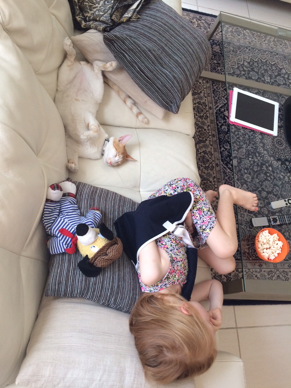 Doven hankat venter på sofaen i grillkyllinge-stilling.IMG_6784IMG_6783Cille lægger sig hos ham og ser lidt film.
