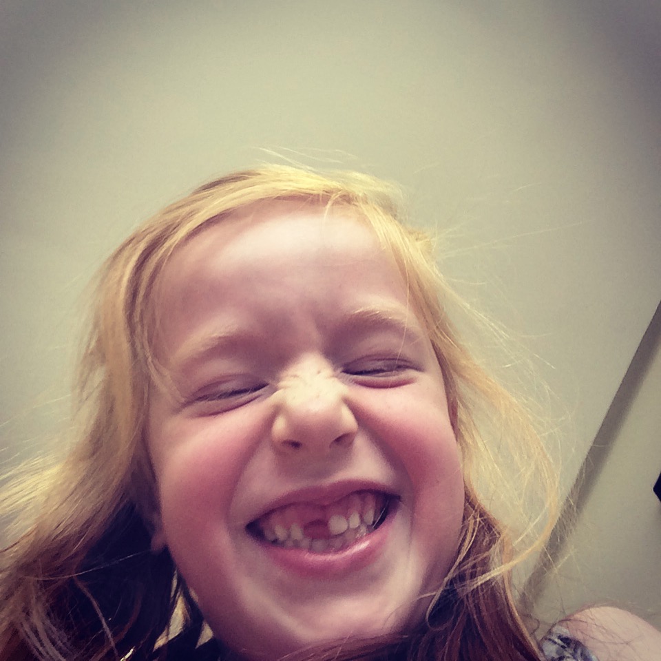 Til den kommentar svarer pigen med et stort grin: “Nej, Mummy, jeg mangler da også at brække first one leg og så the other leg og så min næse!”.