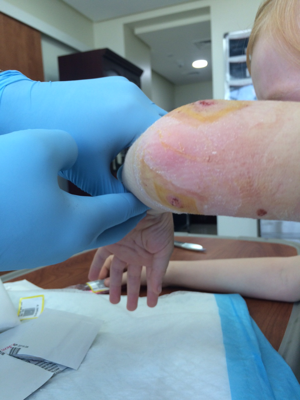 Cille græder, da plastrene bliver fjernet og det er tydeligt, at hendes ubehag relaterer sig til at få albuen befriet af dens beskyttelse.