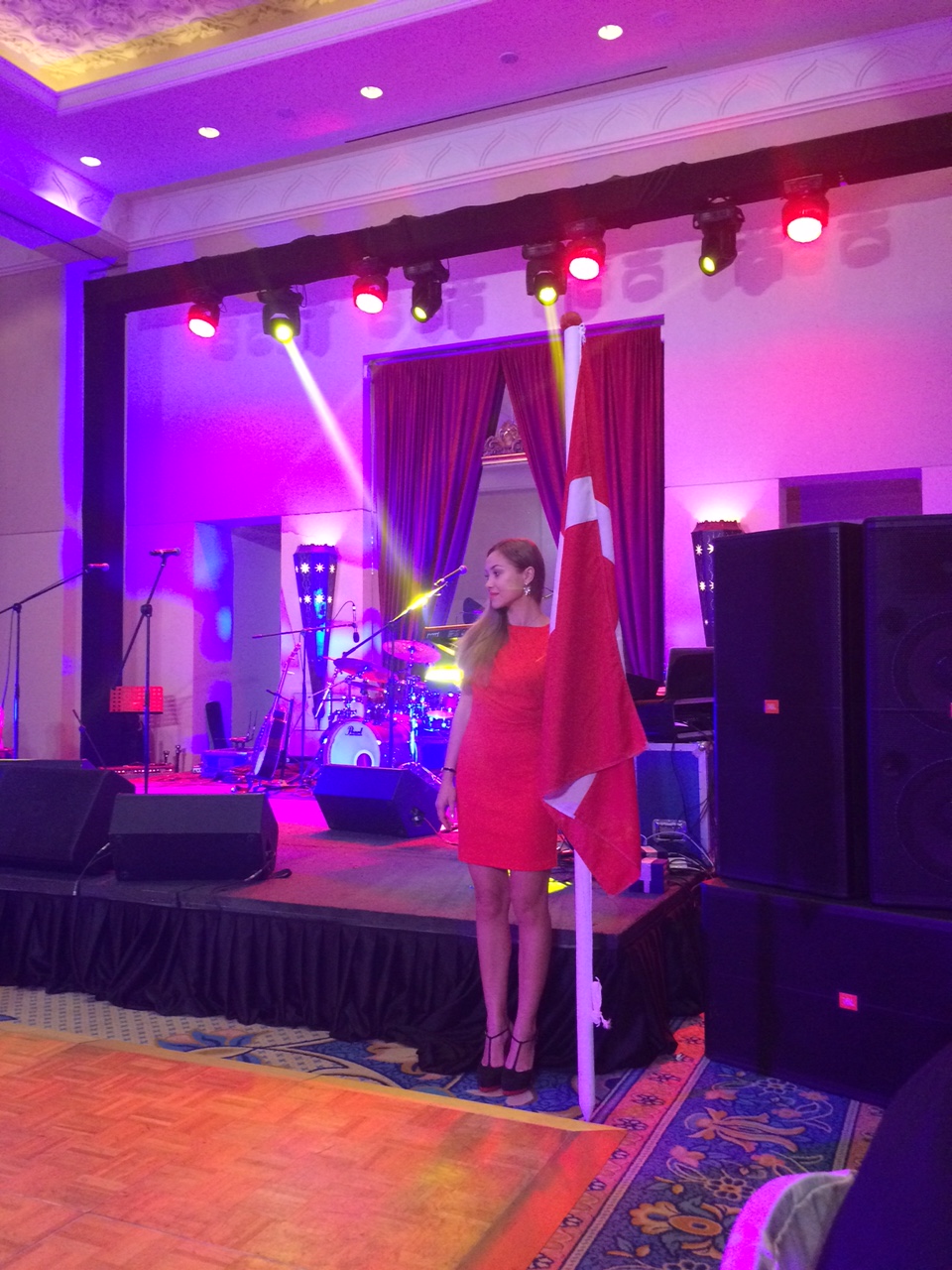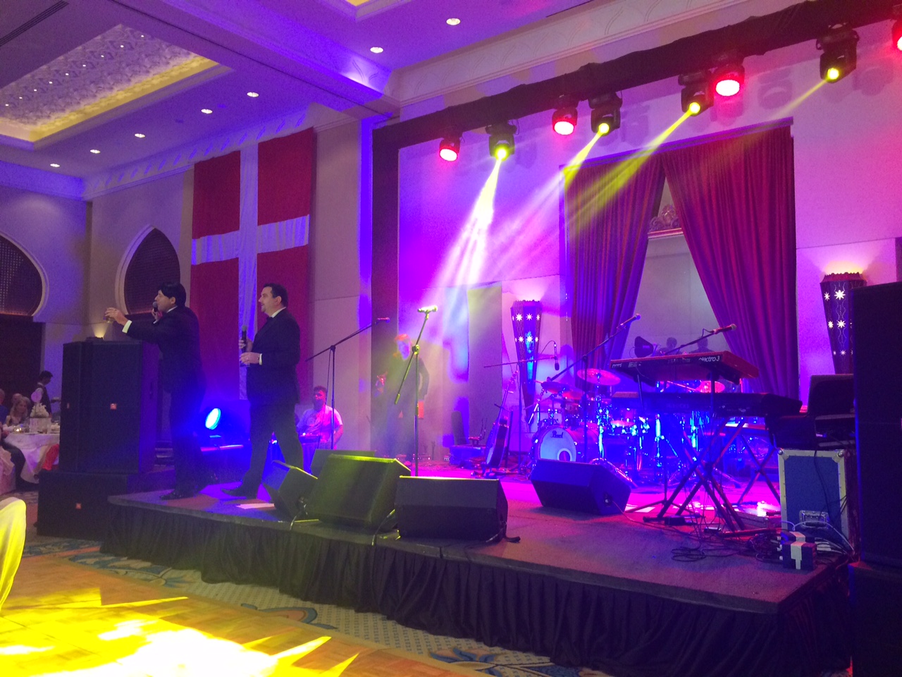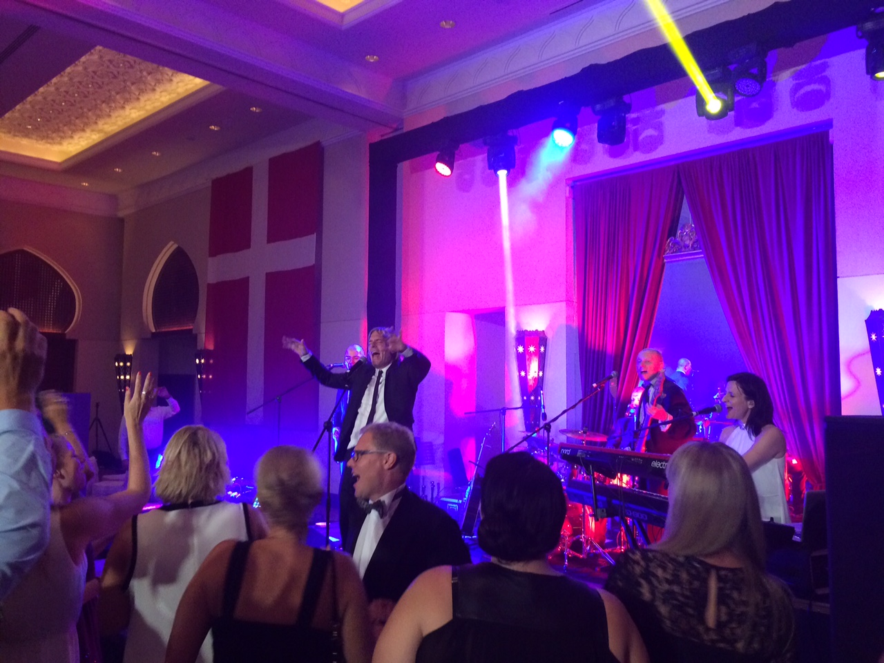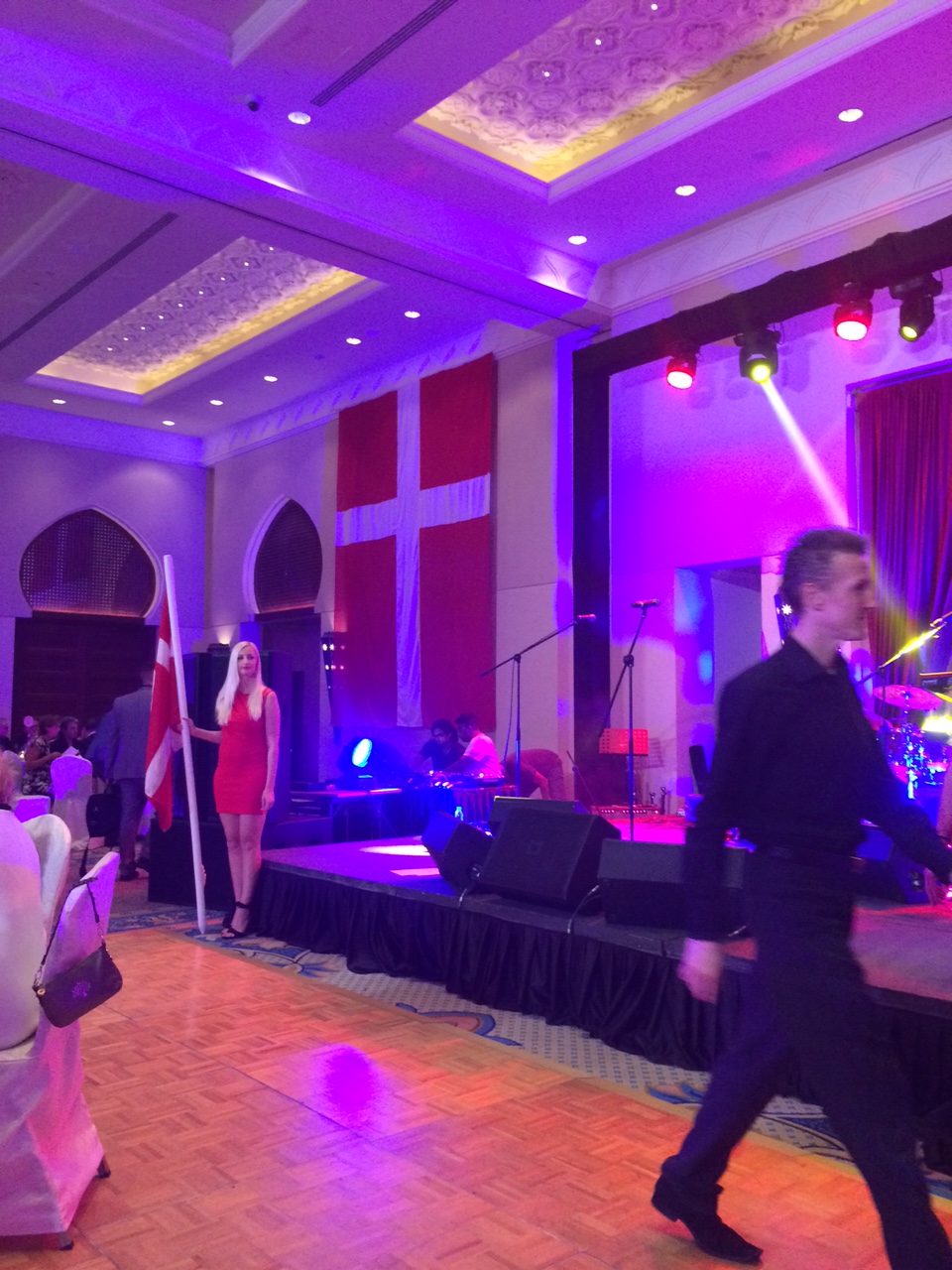 Vi er cirka 300 danskere til fest i salen.