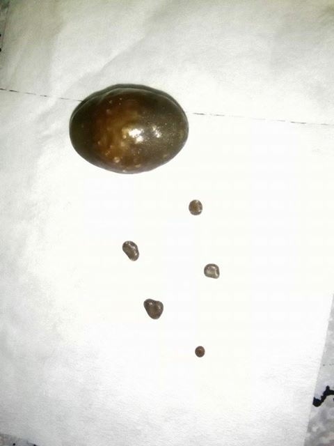 Lili har sendt mig dette billede og har givet sin tilladelse til at jeg må vise de gruopvækkende galdesten her på bloggen.