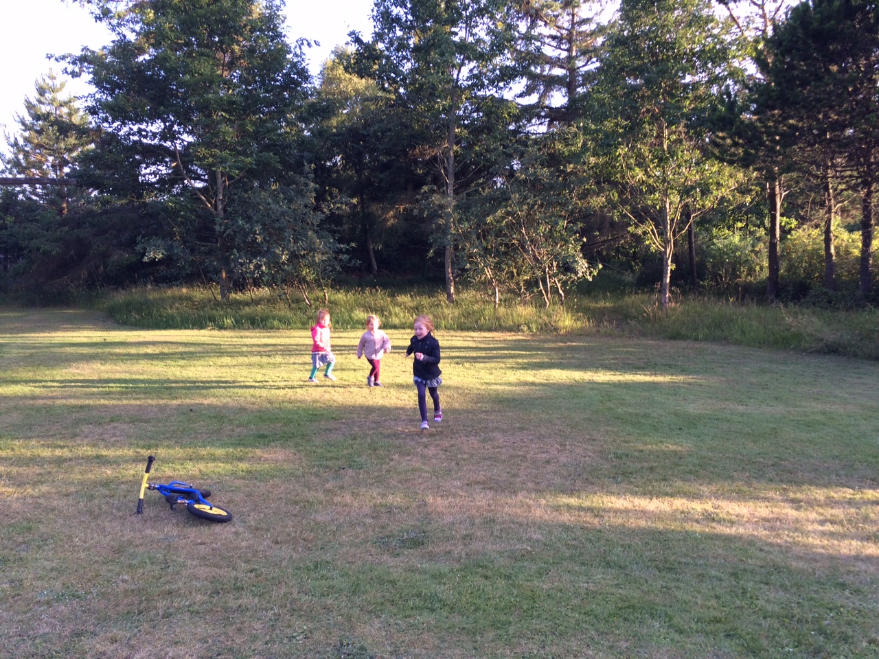 Vi spiser Mormors frikadeller og leger i haven, mens solen kaster lange skygger.