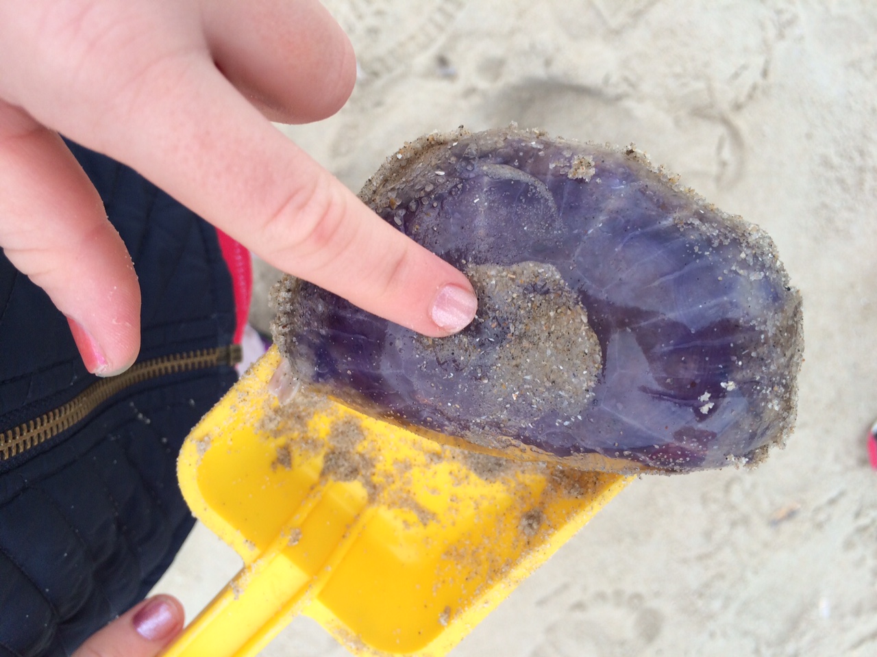 “Take a picture of me, Mummy. It’s for Daddy. He won’t believe how many jellyfish, I dare touch”.