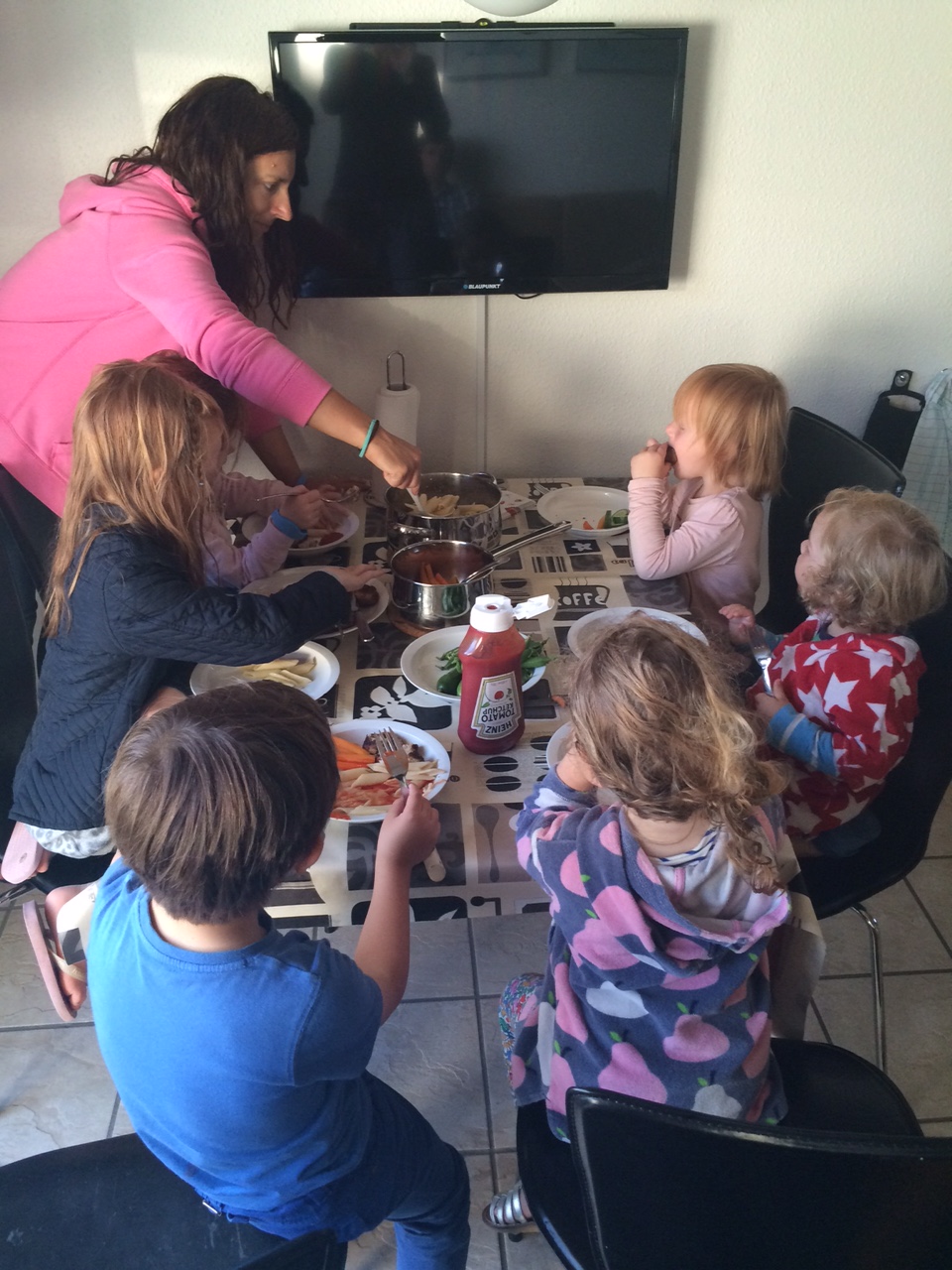 Og så “spiser vi børnene af” på engelsk manér kl. 18, så de voksne efterfølgende kan hygge, tale og spise i fred og ro kl. 20. Snedigt.