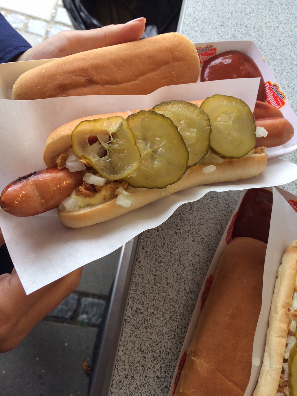 Og vi tænder den indre glød igen med hotdogs fra slagterens pølsevogn.
