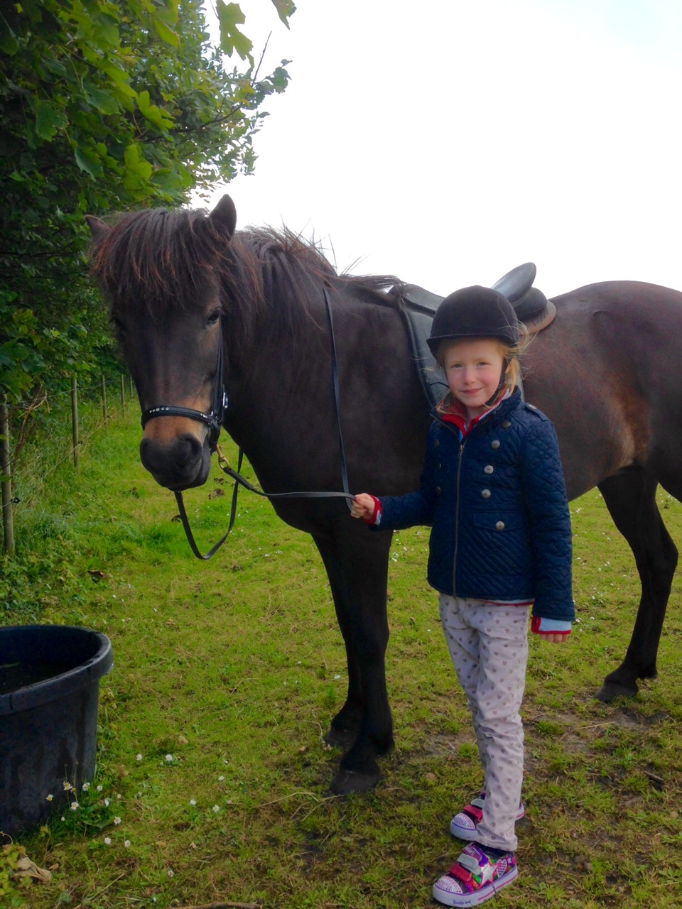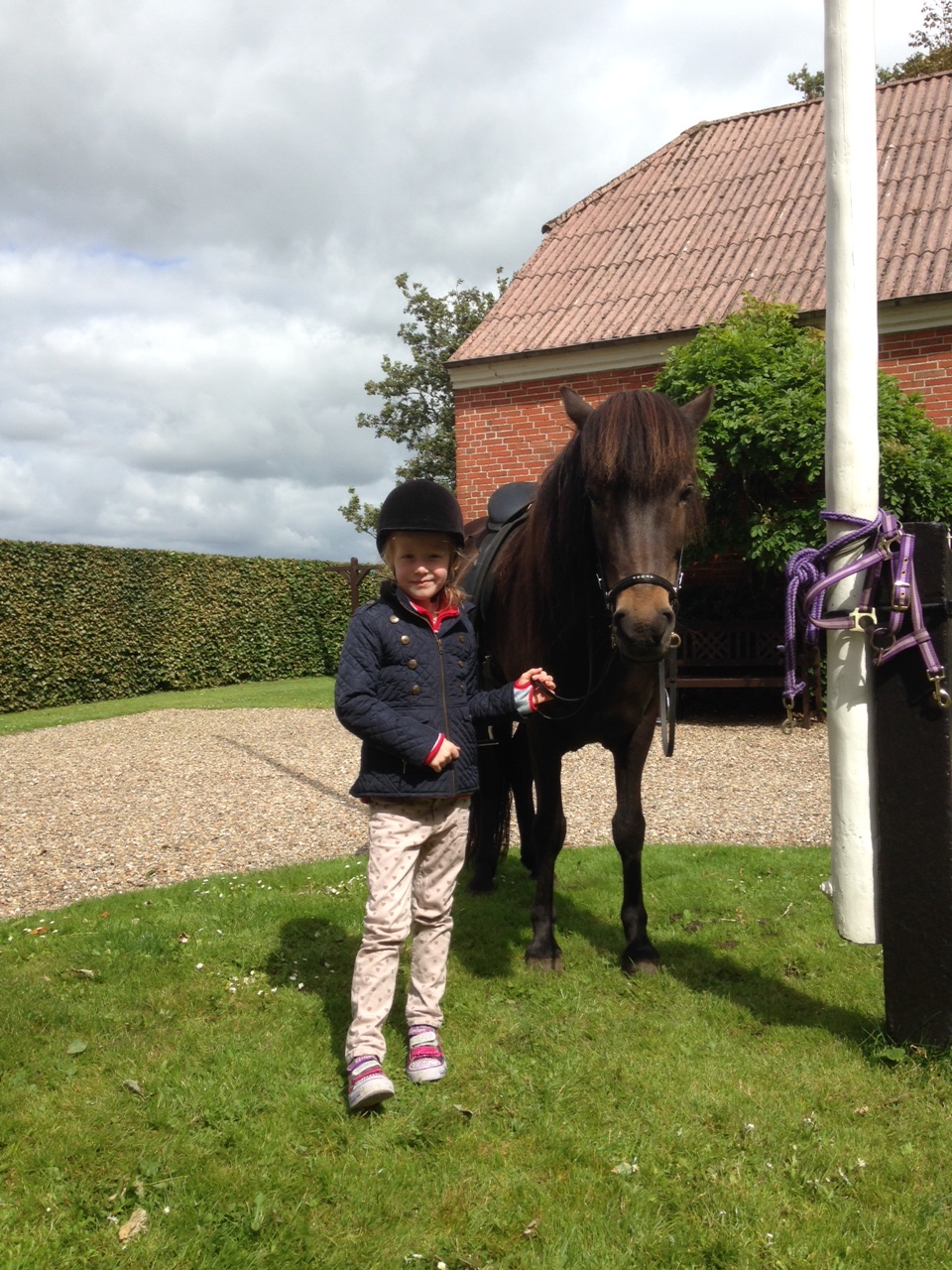 Mit hjerte smelter ved synet af min lille rytterske, der på én og samme tid ser lillebitte og kæmpestor ud.