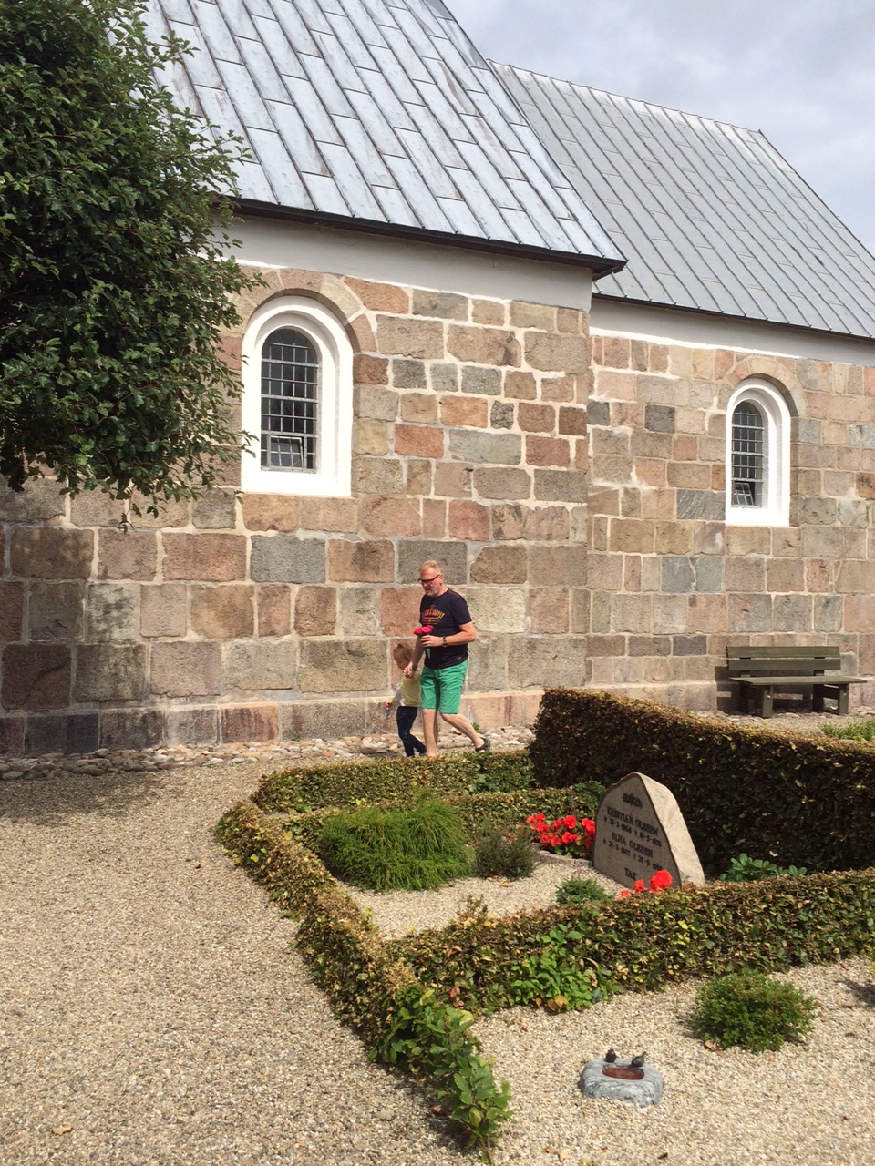Cille finder en lille snegl på kirkegården og lægger den forsigtigt i perlegruset på hendes Oldemors grav. Hun læner sig ind til mig og hvisker: “Jeg har jo ingen gave med, så jeg tænker, at hun bliver glad for en lille snegl”.