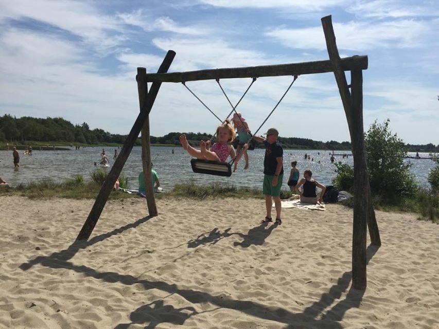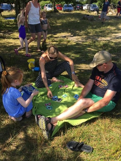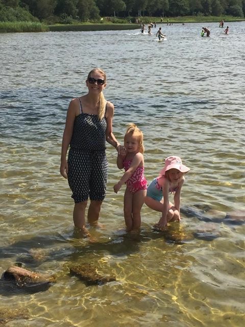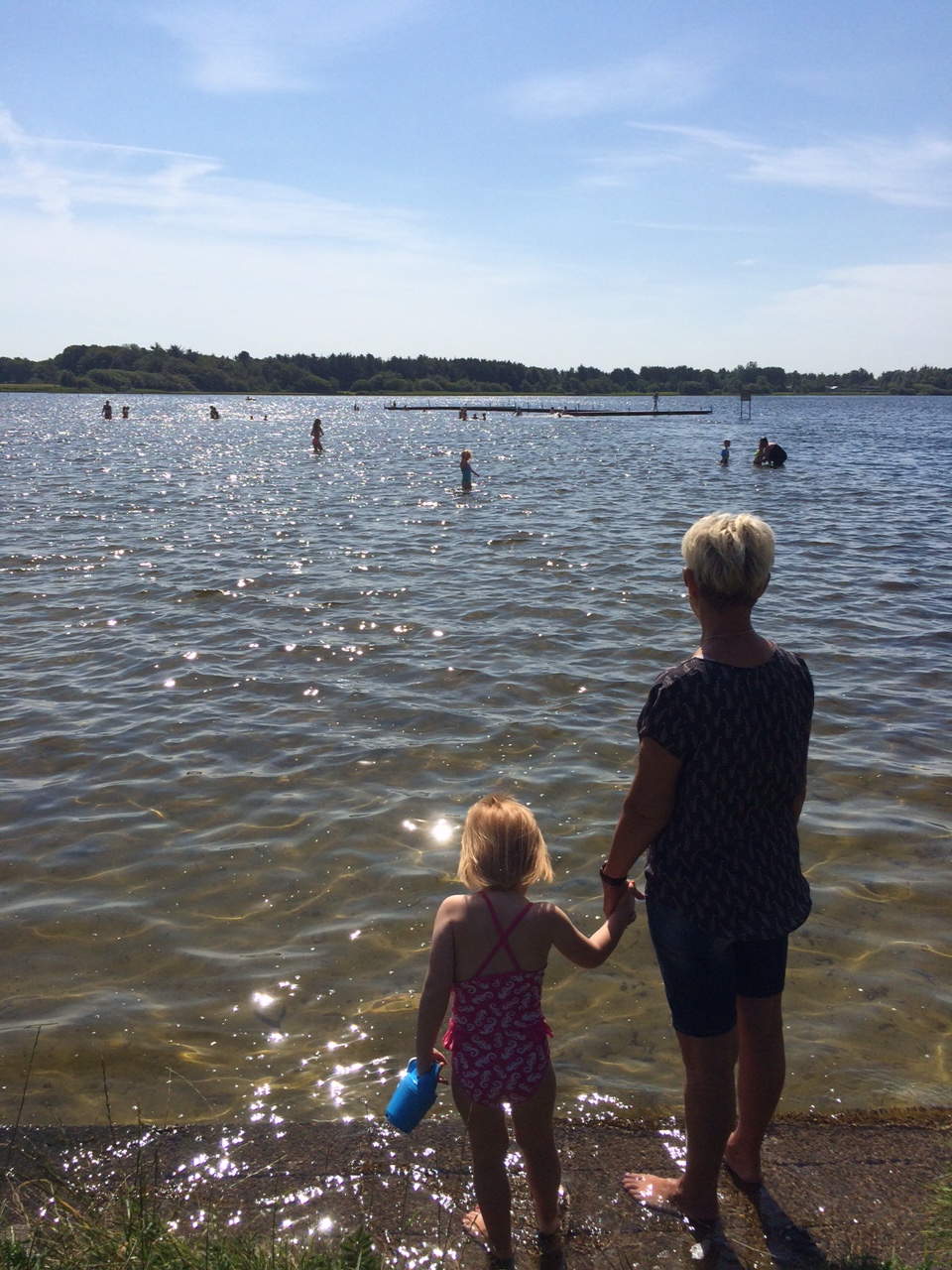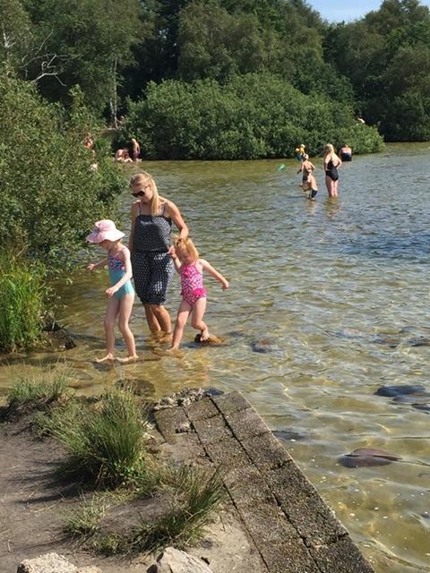 Og i dag – som viser sig at blive en rigtig sommerdag som ikke tidligere set i denne sommerferie – nyder vi solen ved Kvie Sø, et af min barndoms udflugtsmål.