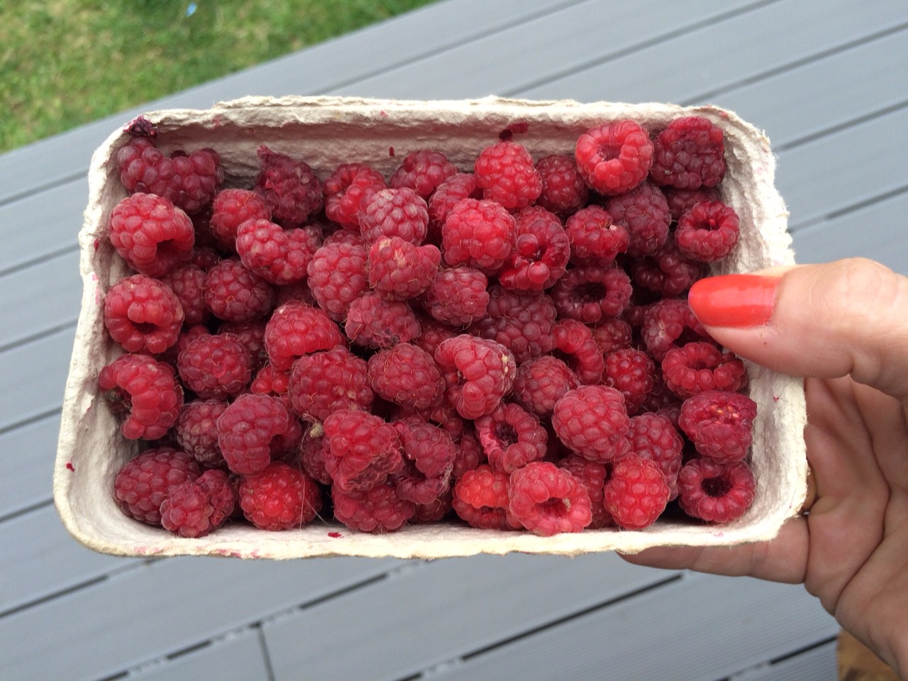 Desserten er bittesmå, friske hindbær fra en bod længere nede ad vejen.