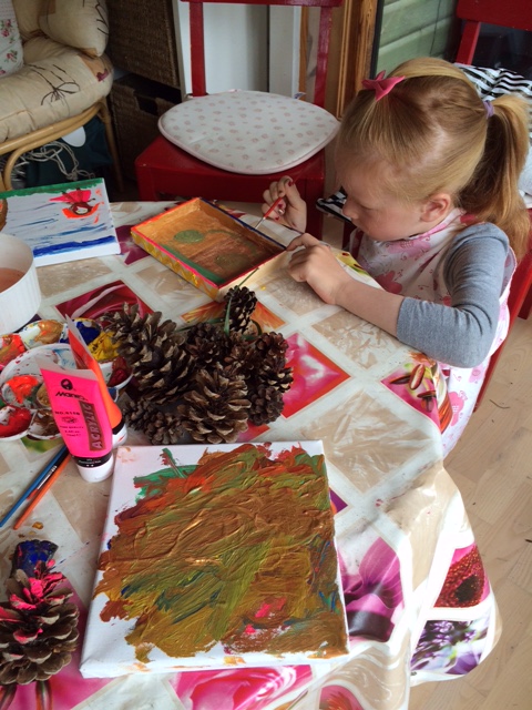 Vi skal nå at male på lærred, sten og kogler!