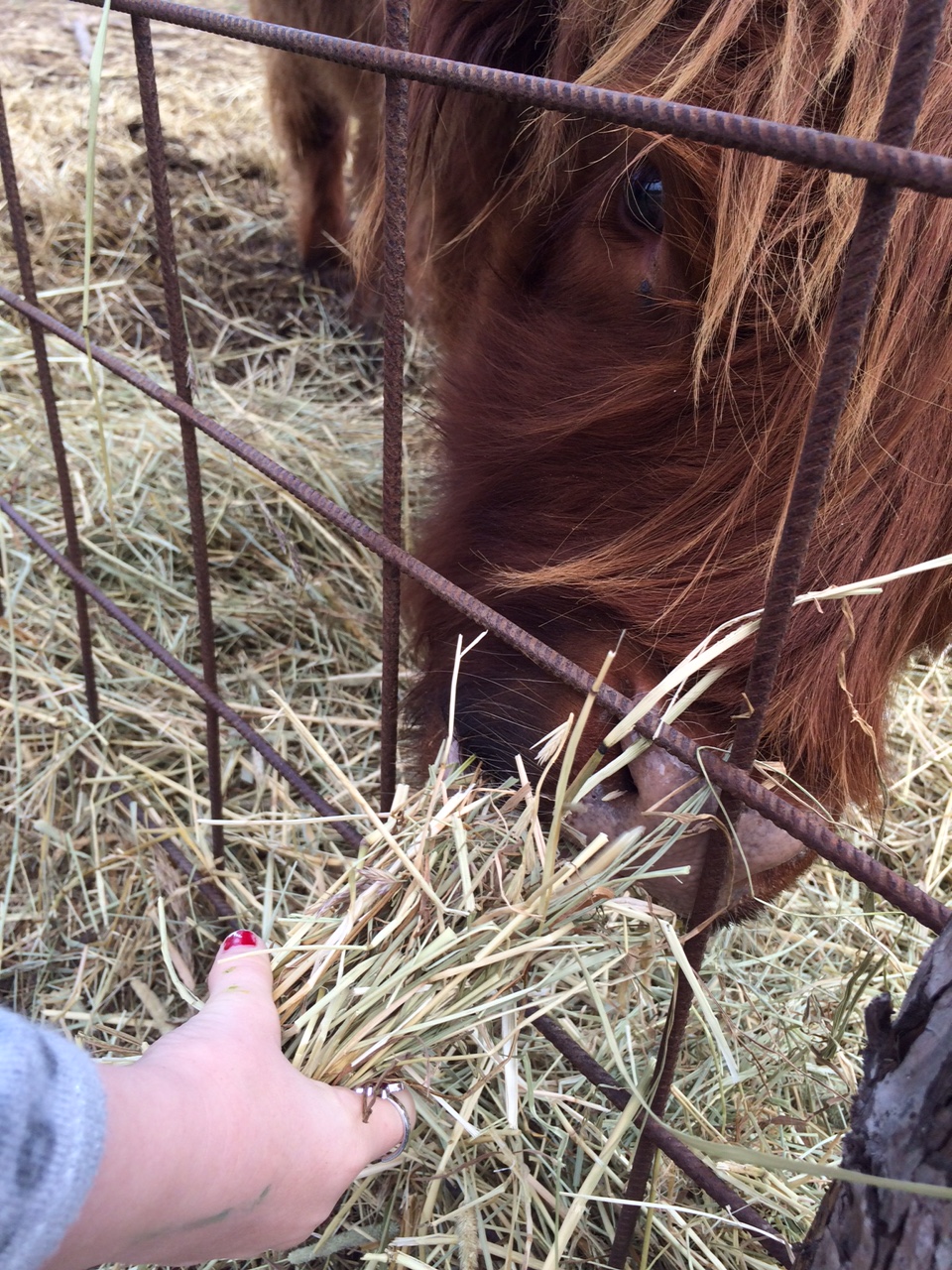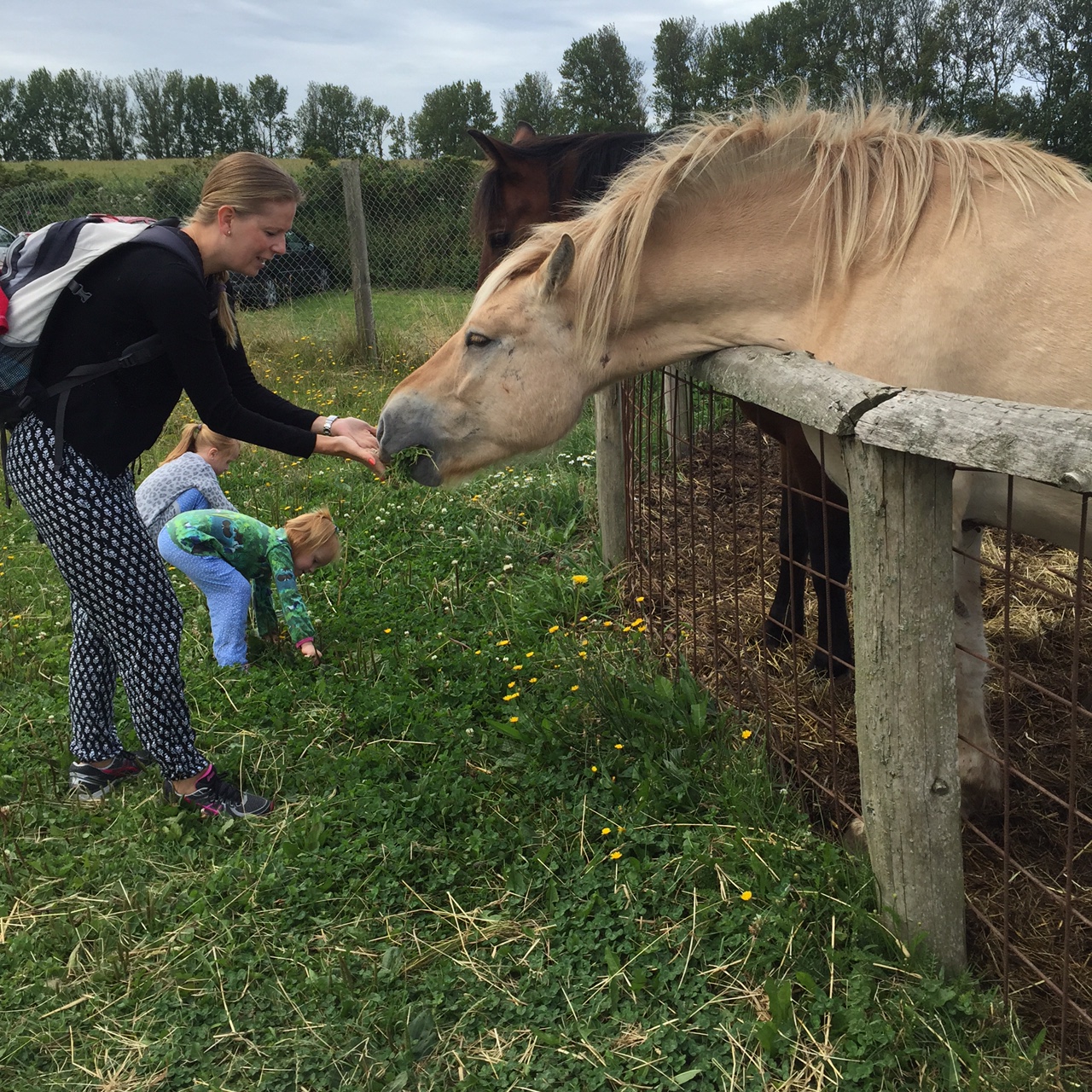 Vi håndfodrer selv køerne og hestene.